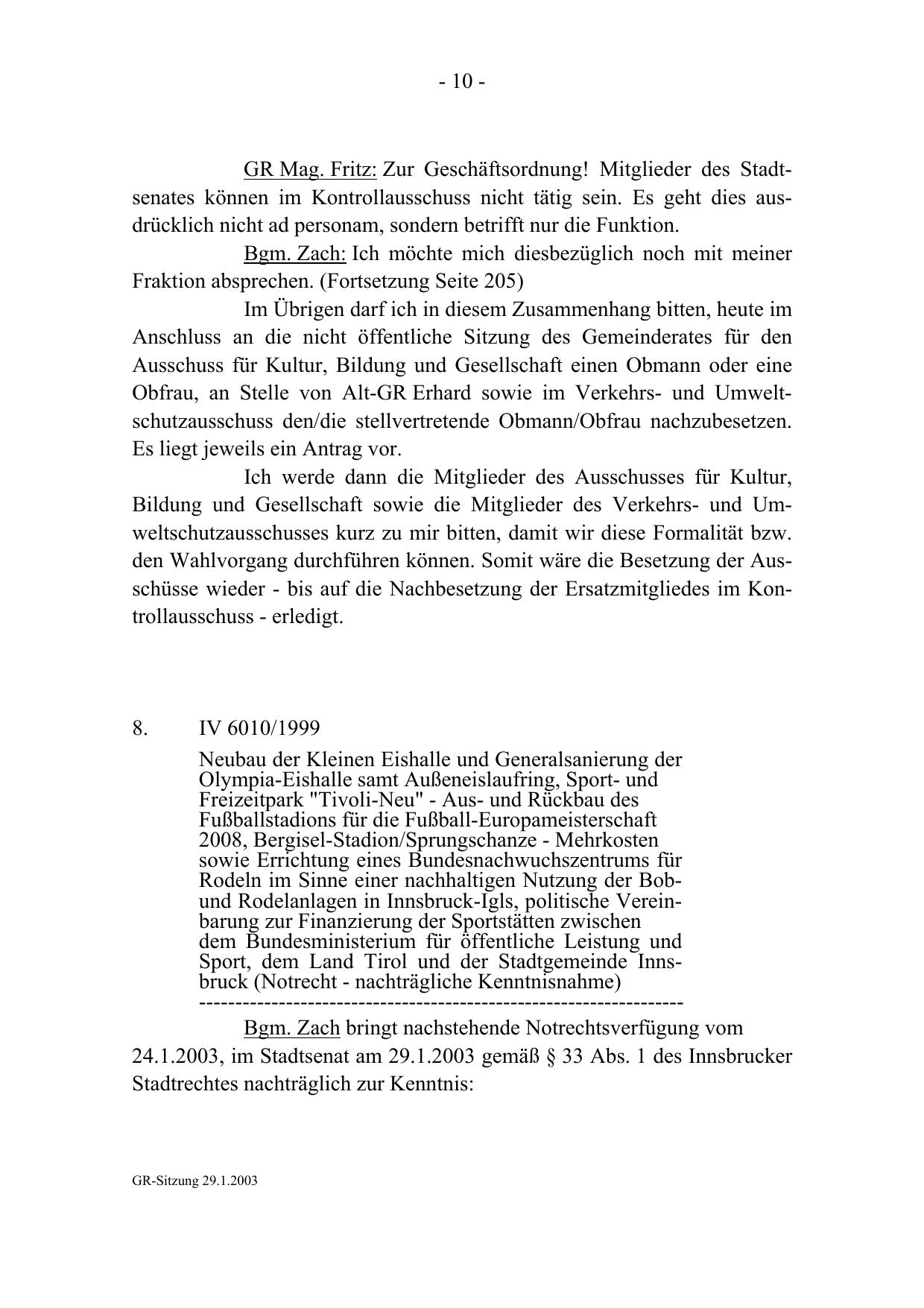 24.1.2003, im Stadtsenat am 29.1.2003 gemäß § 33 Abs. 1 des Innsbrucker
