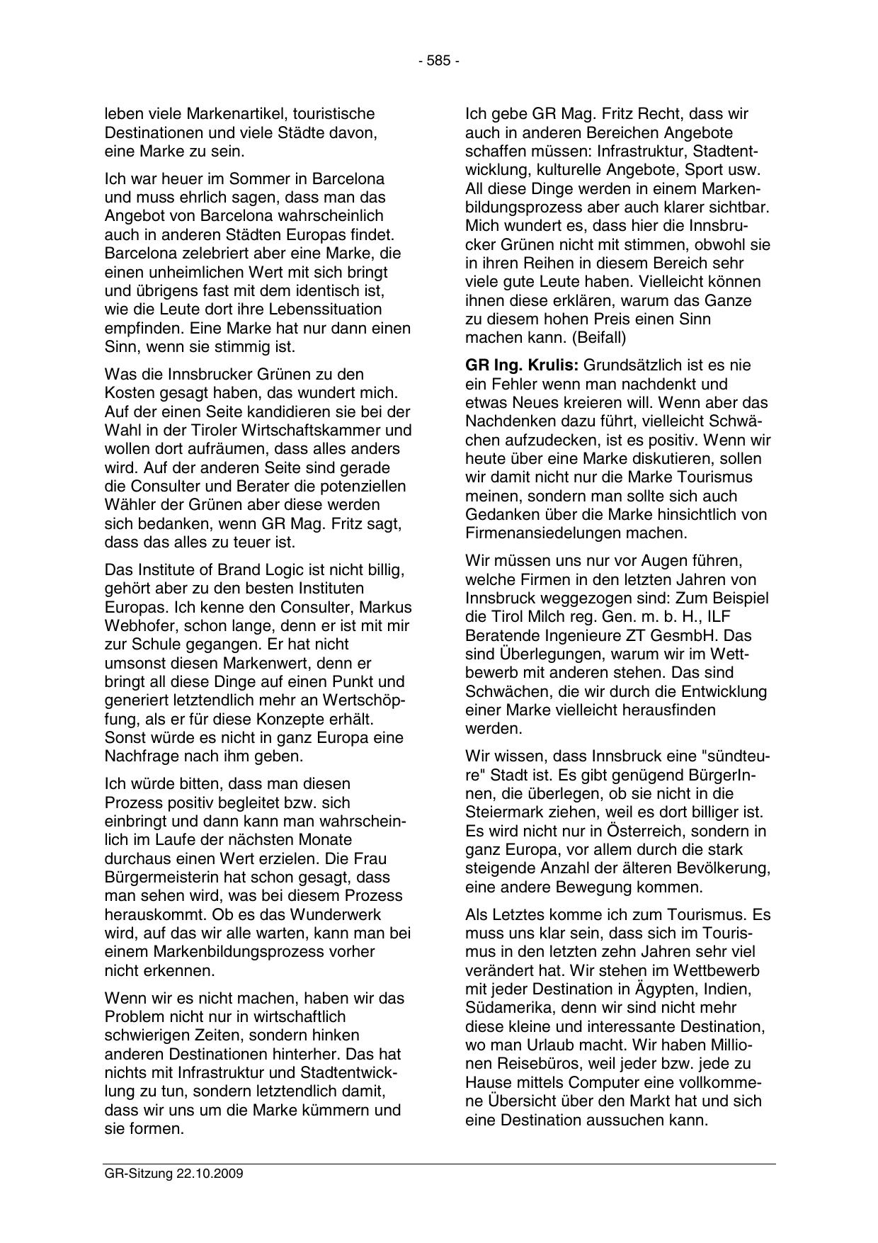 GR Ing. Krulis: Grundsätzlich ist es nie