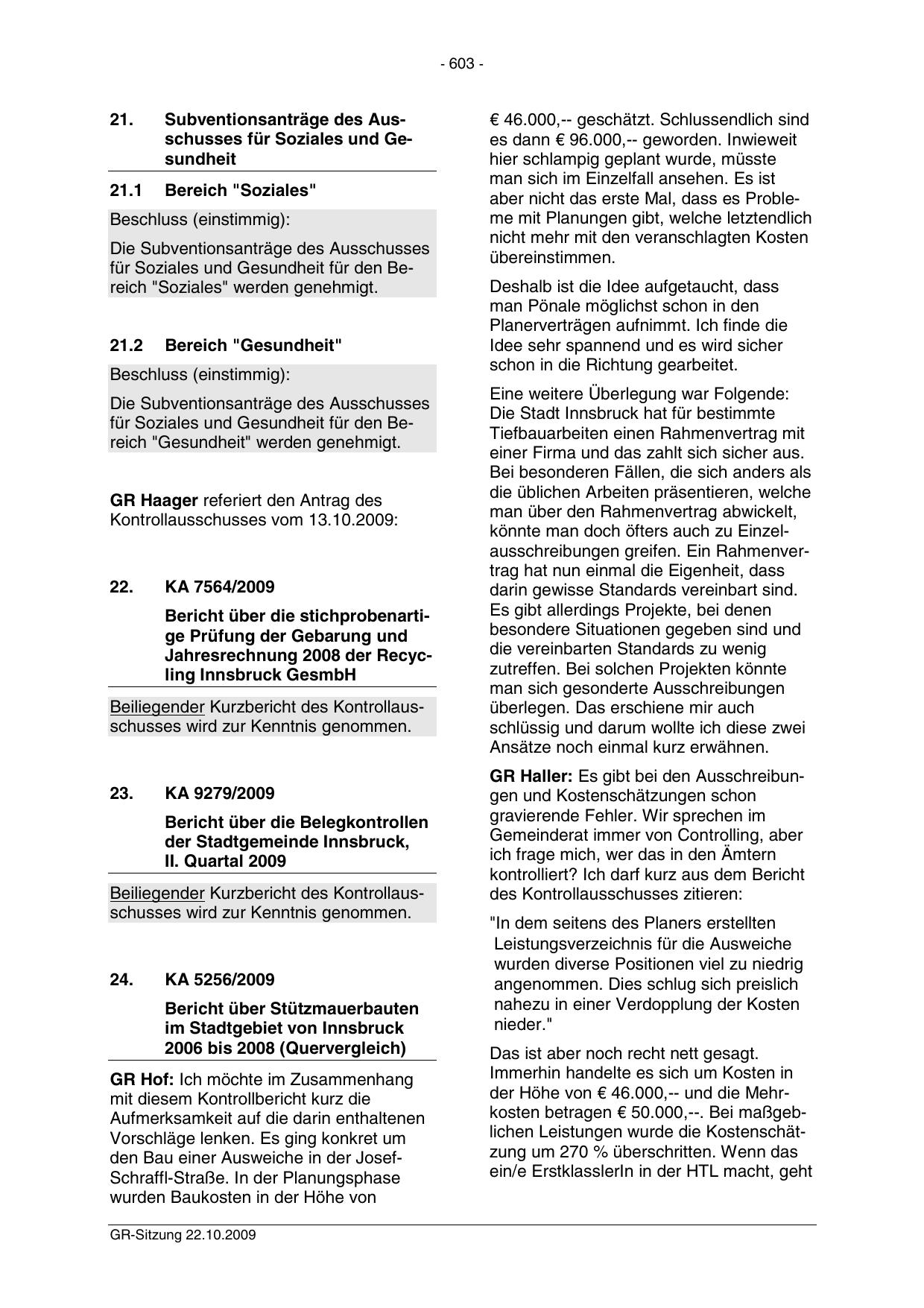 GR Haller: Es gibt bei den Ausschreibungen und Kostenschätzungen schon