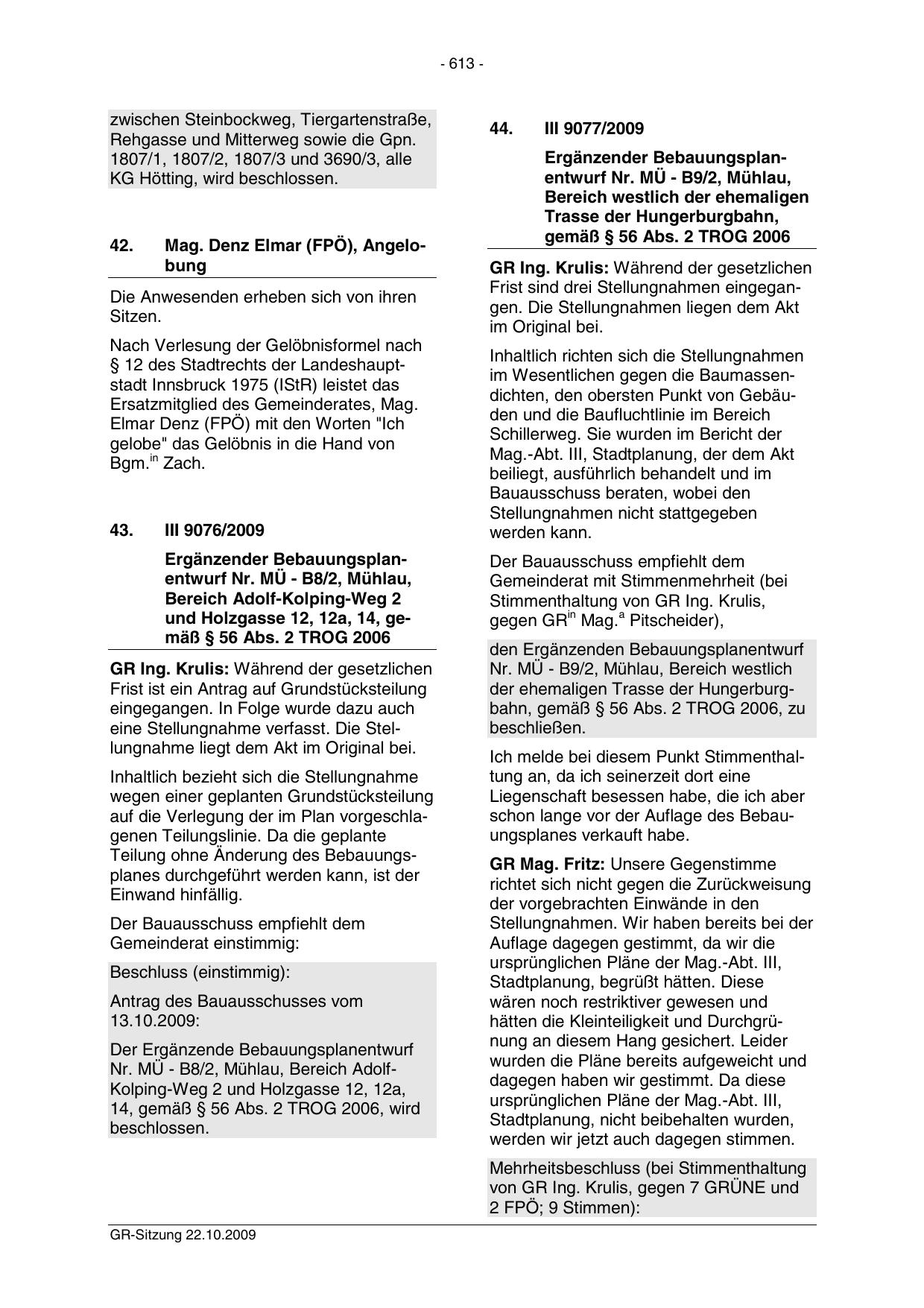 von GR Ing. Krulis, gegen 7 GRÜNE und