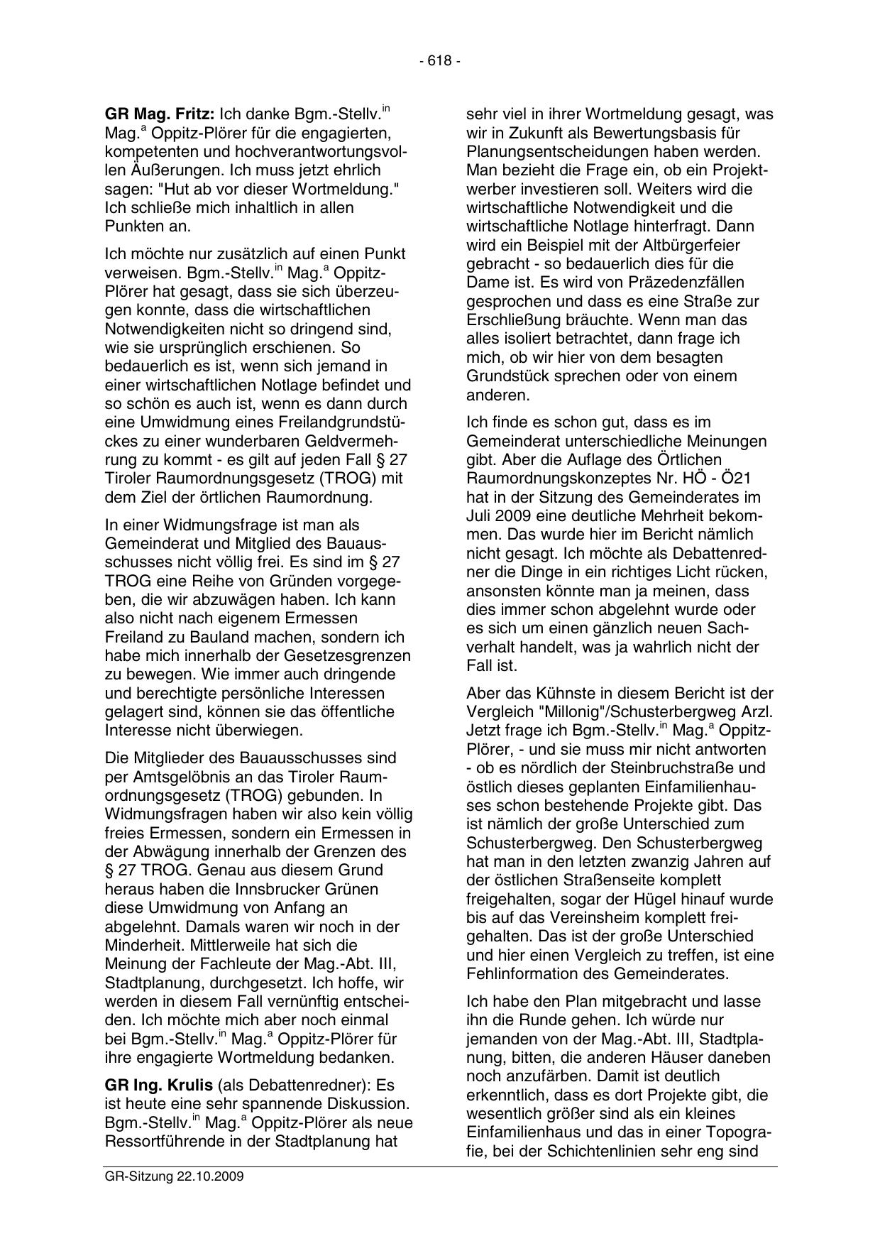 per Amtsgelöbnis an das Tiroler Raumordnungsgesetz (TROG) gebunden. In