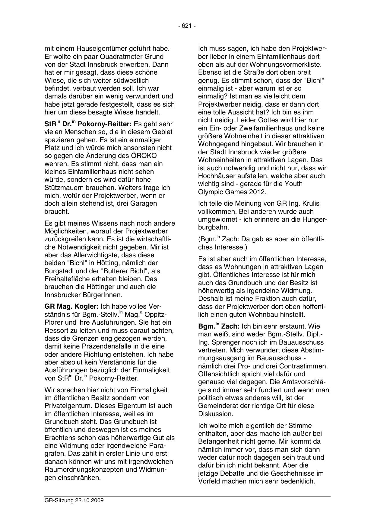 GR-Sitzung 22.10.2009