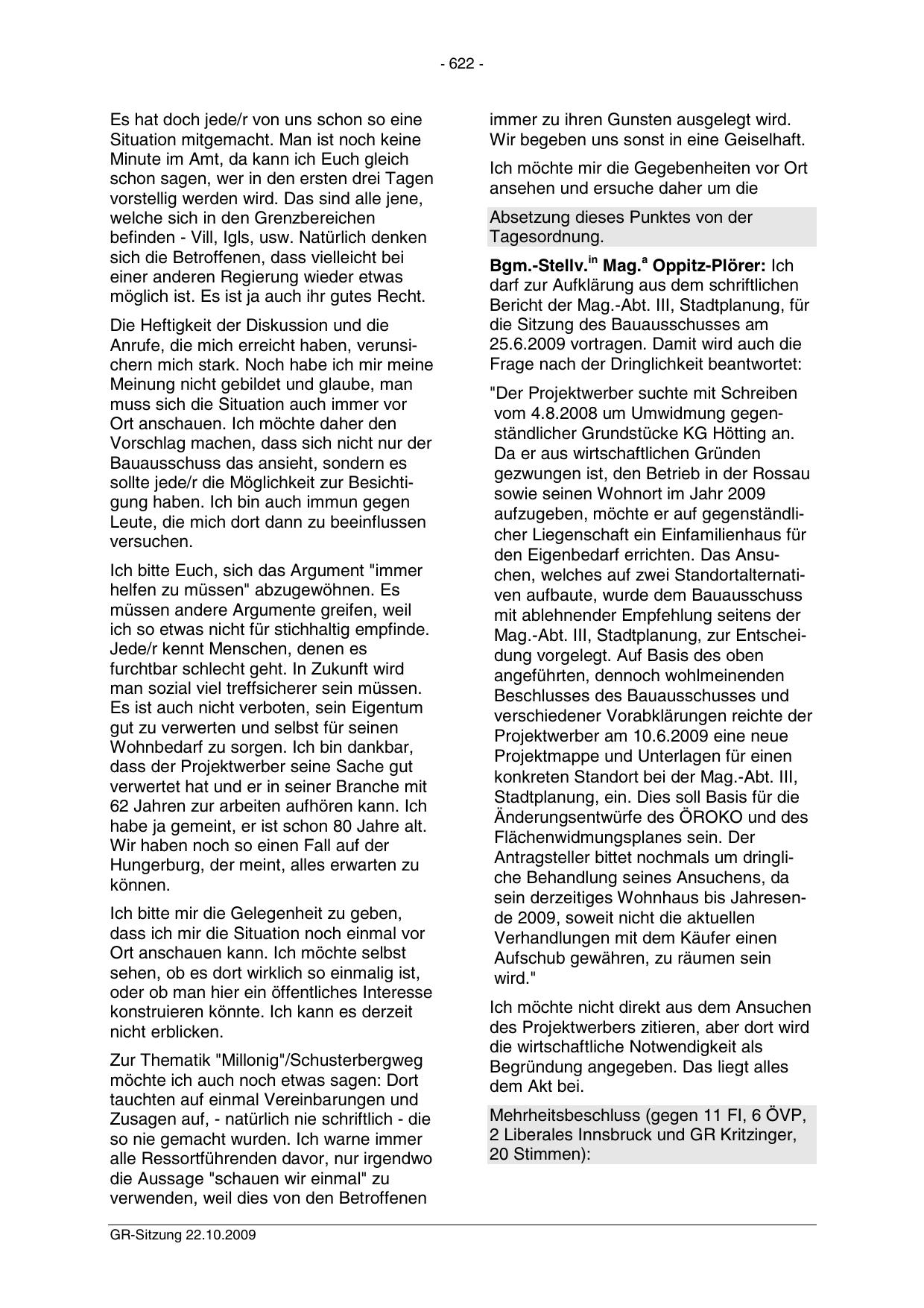 vom 4.8.2008 um Umwidmung gegenständlicher Grundstücke KG Hötting an.