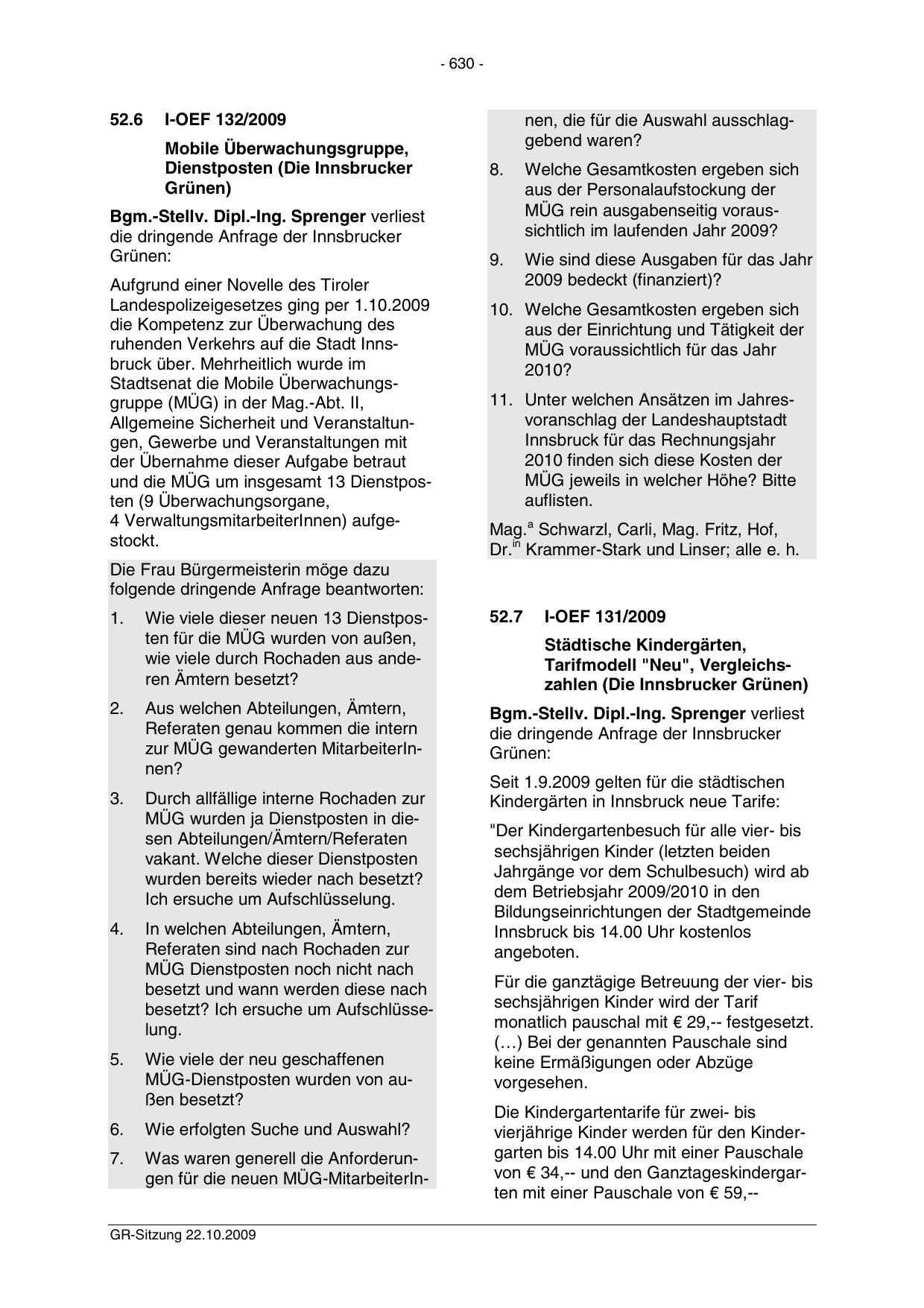 ruhenden Verkehrs auf die Stadt Innsbruck über. Mehrheitlich wurde im