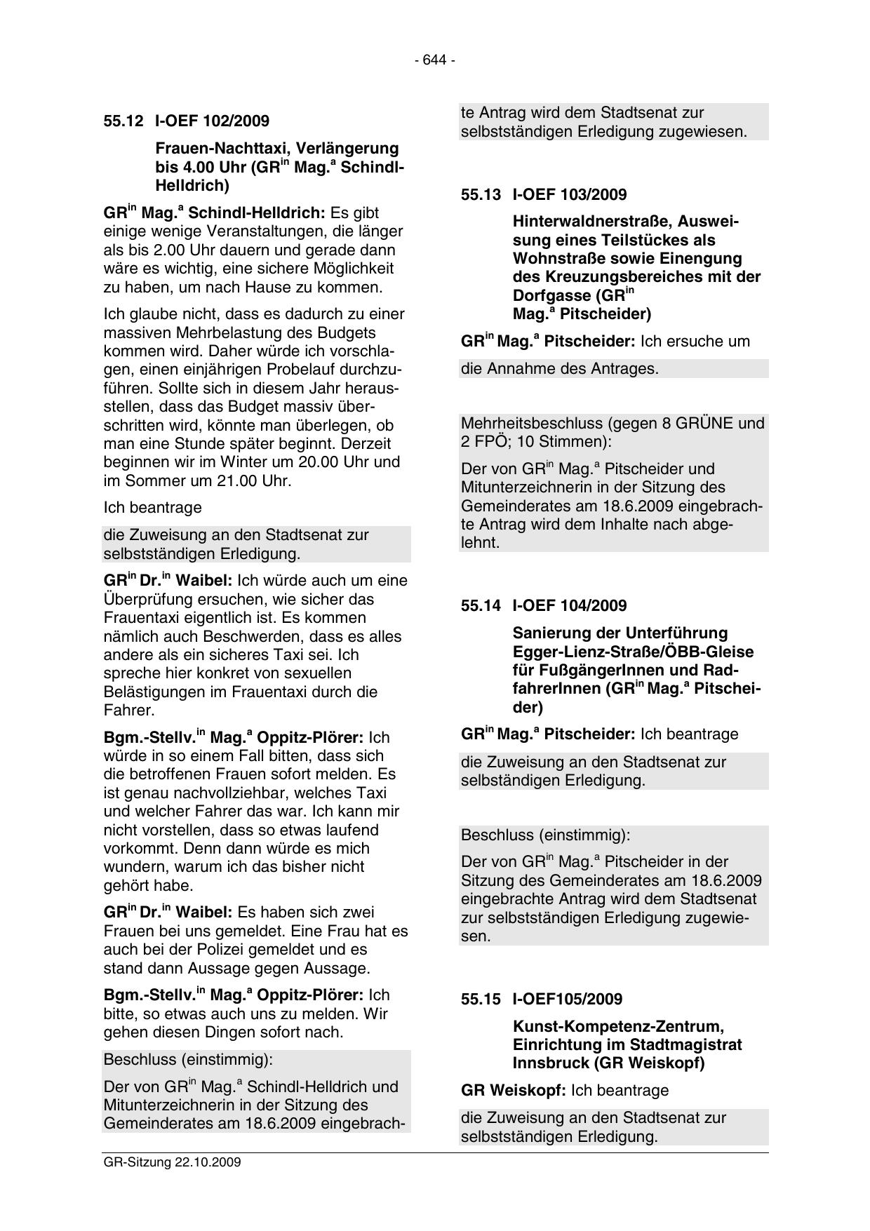 Gemeinderates am 18.6.2009 eingebrachGR-Sitzung 22.10.2009