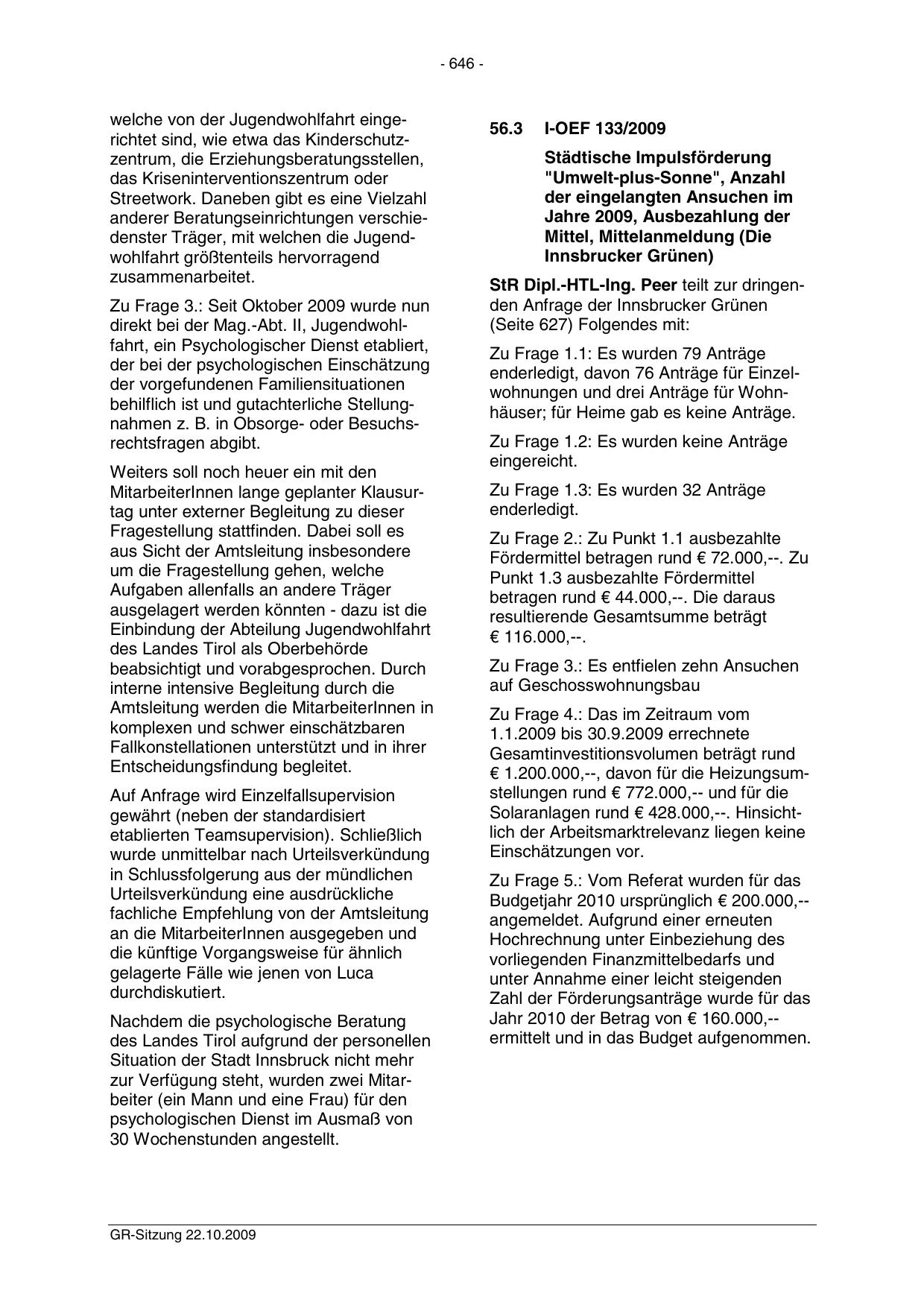 Budgetjahr 2010 ursprünglich € 200.000,-angemeldet. Aufgrund einer erneuten