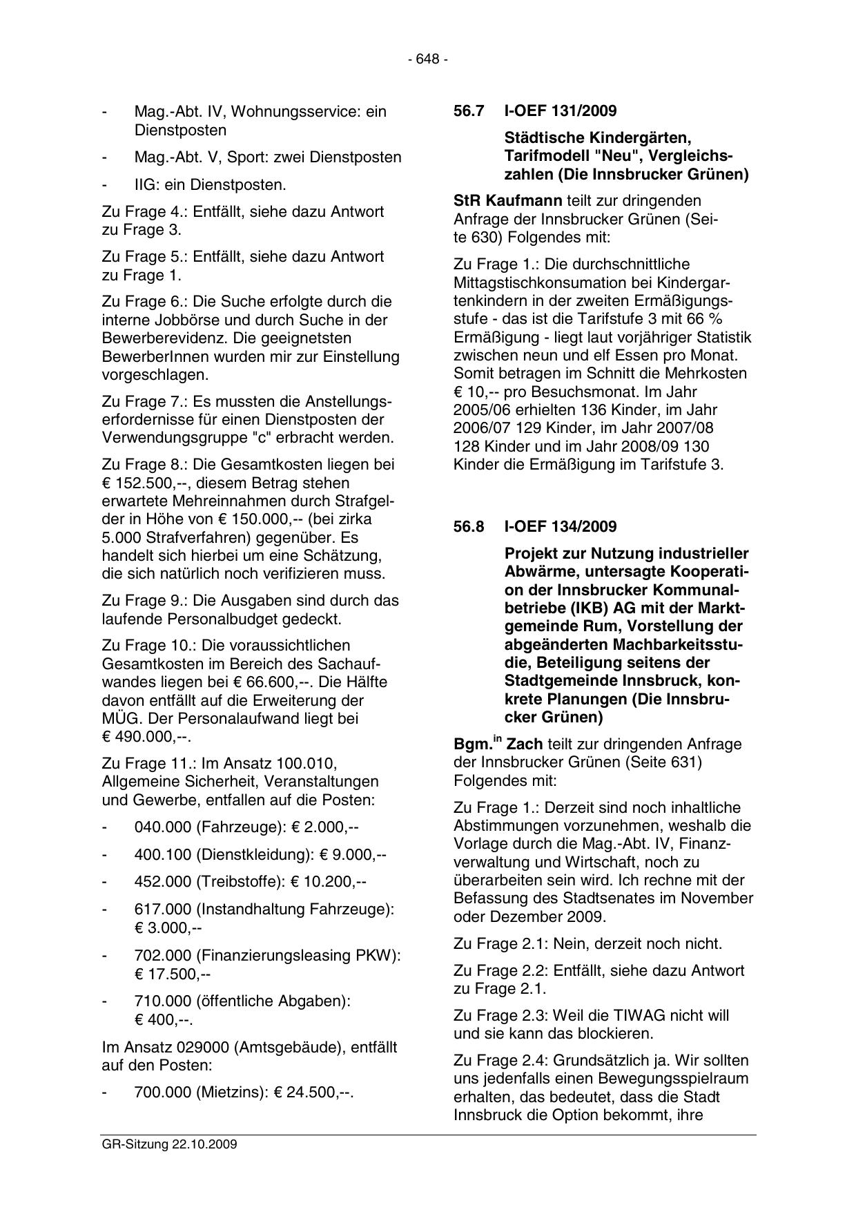 Anfrage der Innsbrucker Grünen (Seite 630) Folgendes mit: