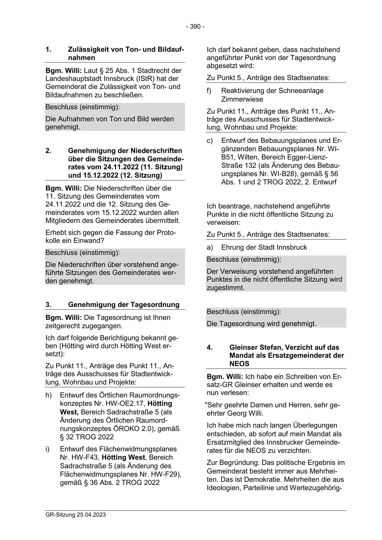 Bgm. Willi: Die Tagesordnung ist Ihnen