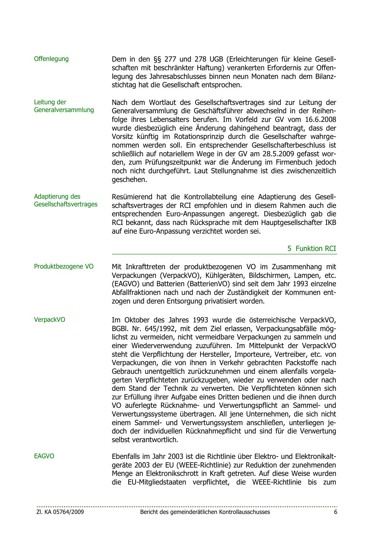 Resümierend hat die Kontrollabteilung eine Adaptierung des Gesellschaftsvertrages der RCI empfohlen und in diesem Rahmen auch die