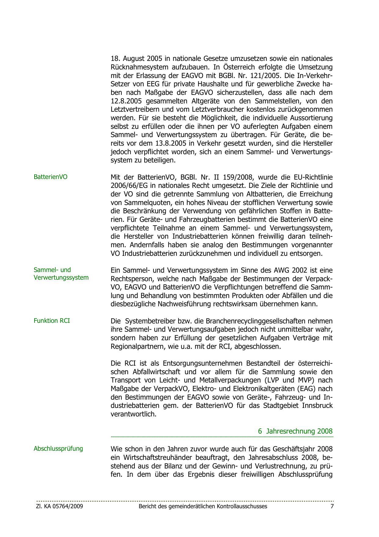den Bestimmungen der EAGVO sowie von Geräte-, Fahrzeug- und Industriebatterien gem. der BatterienVO für das Stadtgebiet Innsbruck