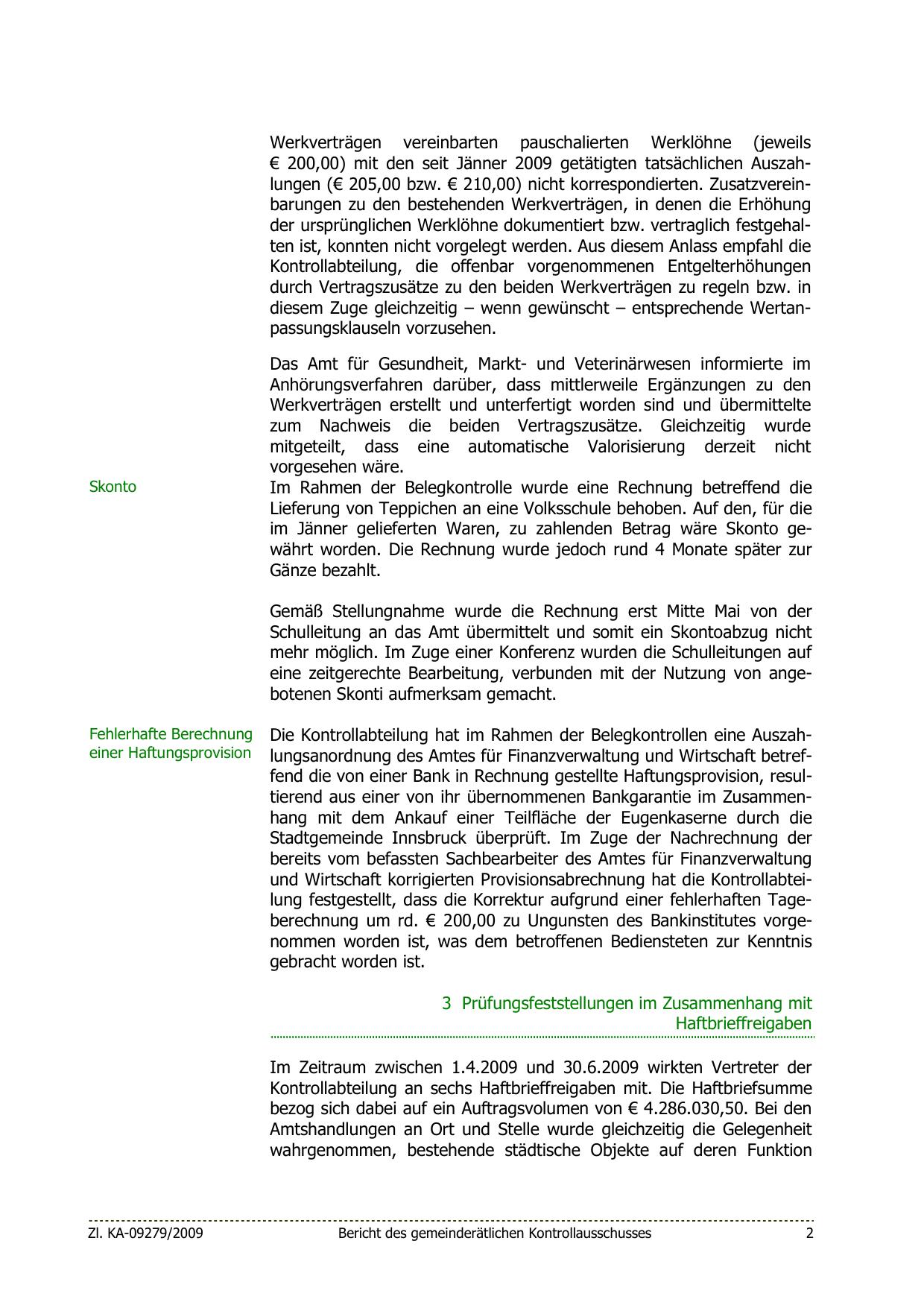 Die Kontrollabteilung hat im Rahmen der Belegkontrollen eine Auszahlungsanordnung des Amtes für Finanzverwaltung und Wirtschaft betreffend die von einer Bank in Rechnung gestellte Haftungsprovision, resultierend aus einer von ihr übernommenen Bankgarantie im Zusammenhang mit dem Ankauf einer Teilfläche der Eugenkaserne durch die