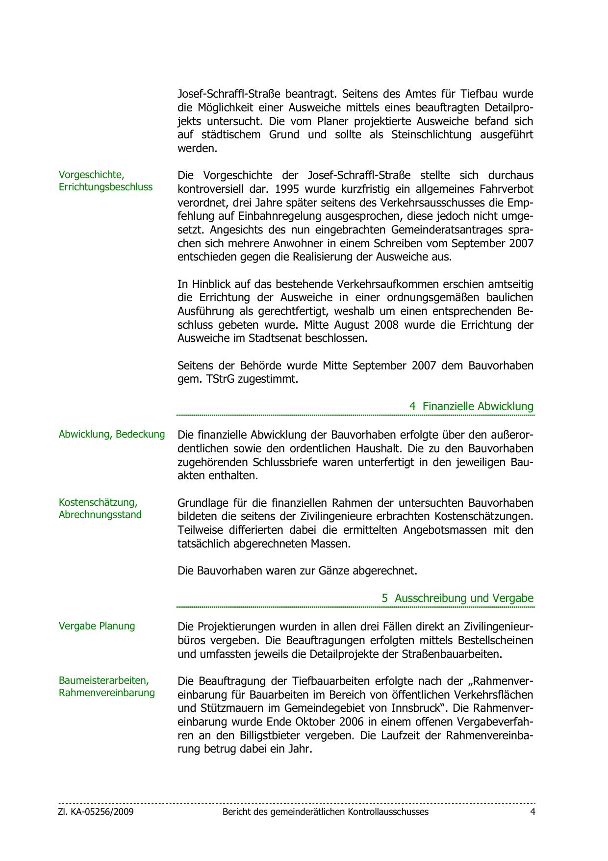 und Stützmauern im Gemeindegebiet von Innsbruck“. Die Rahmenvereinbarung wurde Ende Oktober 2006 in einem offenen Vergabeverfahren an den Billigstbieter vergeben. Die Laufzeit der Rahmenvereinbarung betrug dabei ein Jahr.