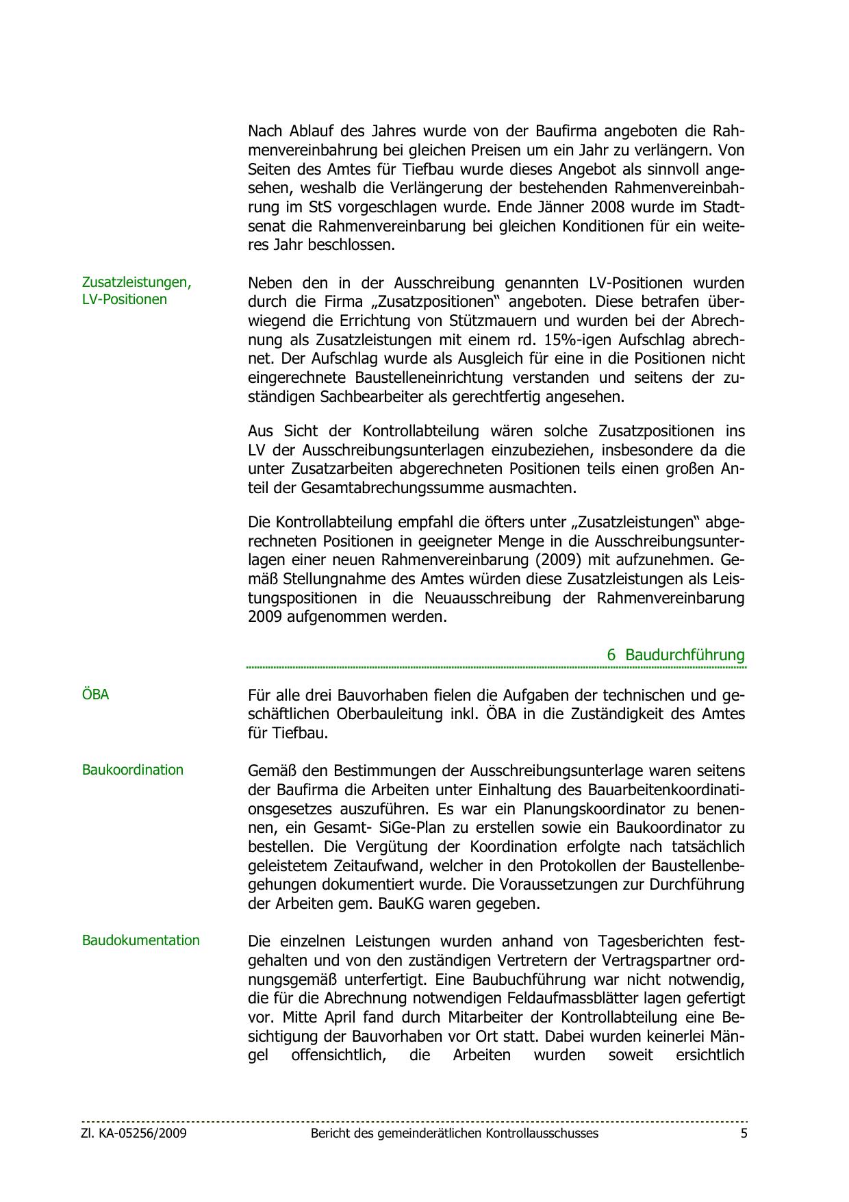 durch die Firma „Zusatzpositionen“ angeboten. Diese betrafen überwiegend die Errichtung von Stützmauern und wurden bei der Abrechnung als Zusatzleistungen mit einem rd. 15%-igen Aufschlag abrechnet. Der Aufschlag wurde als Ausgleich für eine in die Positionen nicht