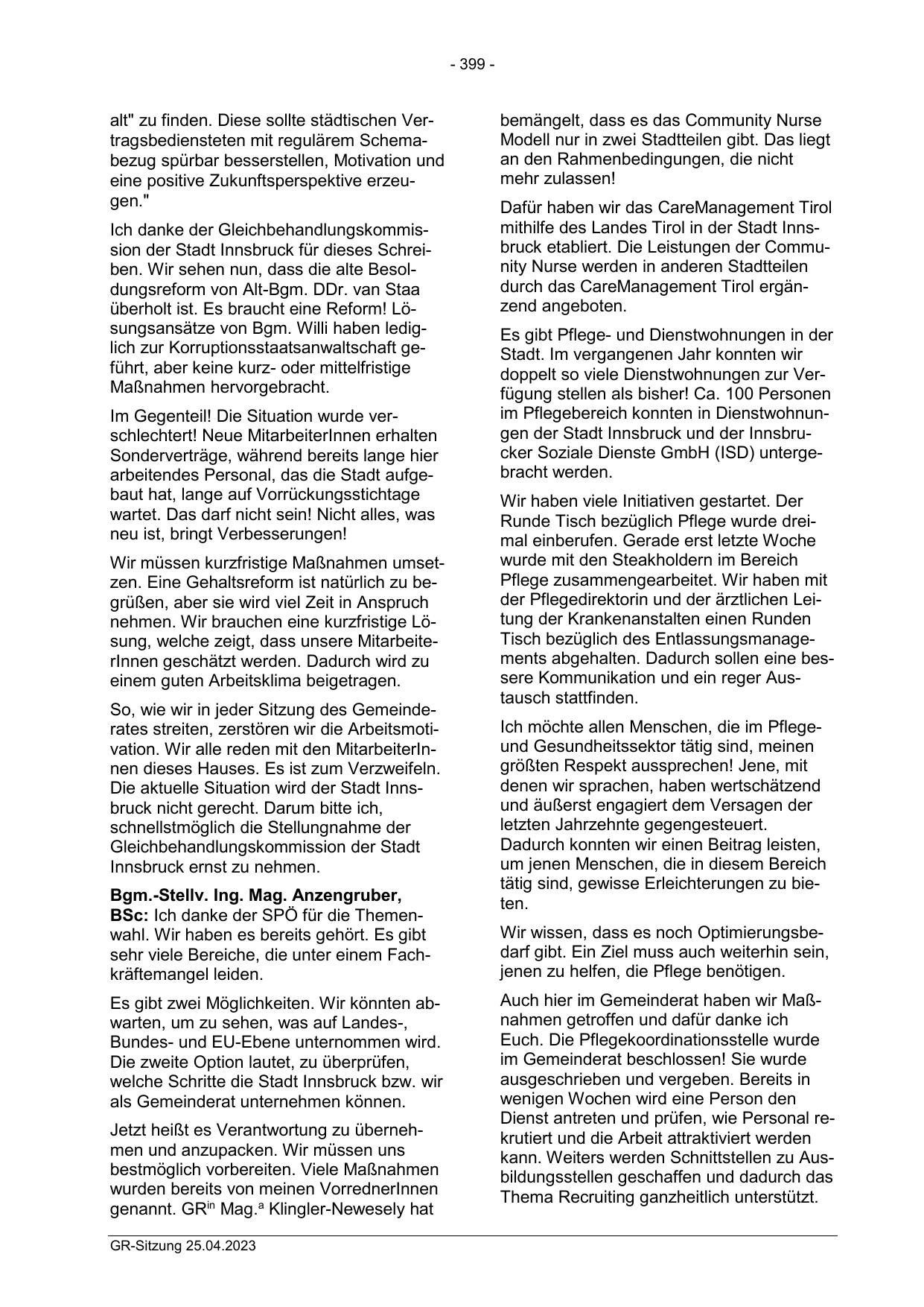 Ich danke der Gleichbehandlungskommission der Stadt Innsbruck für dieses Schreiben. Wir sehen nun, dass die alte Besoldungsreform von Alt-Bgm. DDr. van Staa