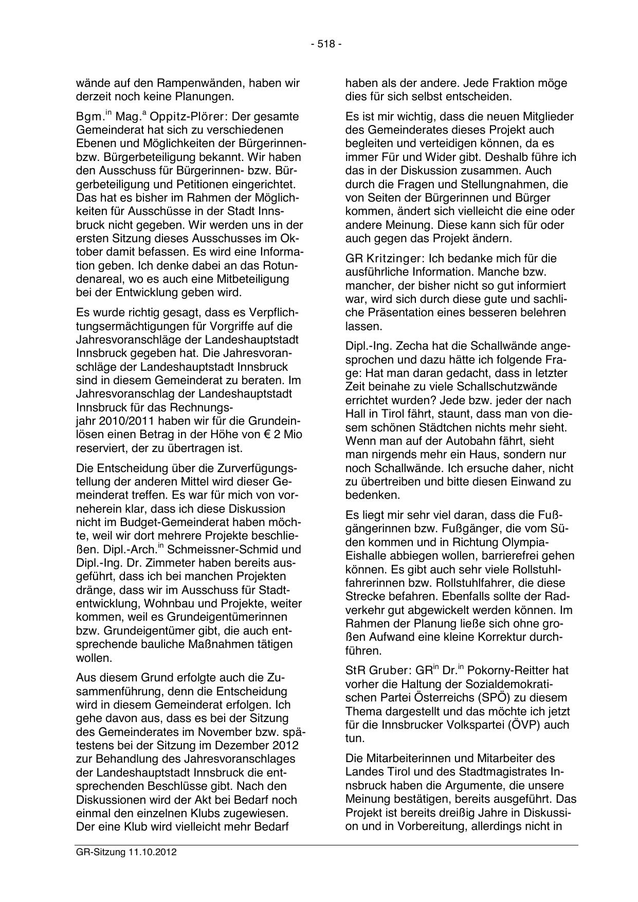 nicht im Budget-Gemeinderat haben möchte, weil wir dort mehrere Projekte beschließen. Dipl.-Arch.in Schmeissner-Schmid und