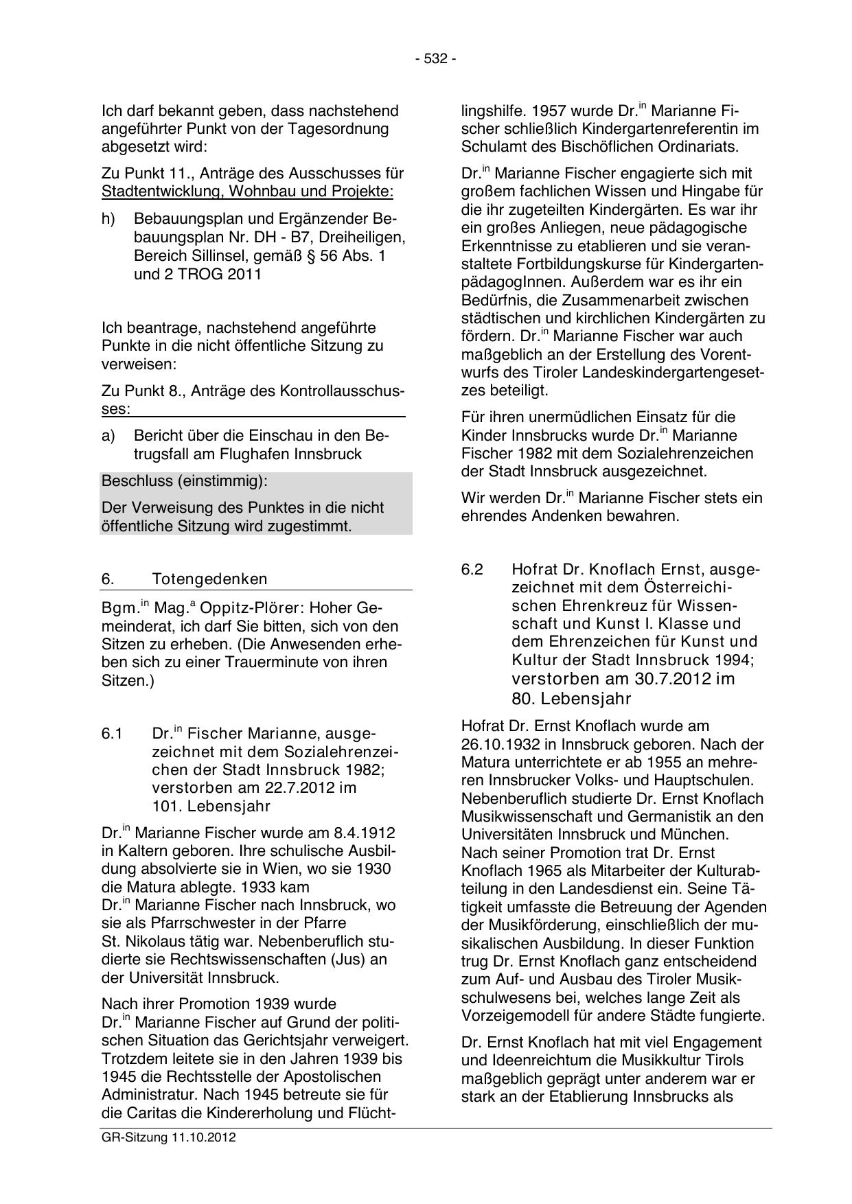 Bgm.in Mag.a Oppitz-Plörer: Hoher Gemeinderat, ich darf Sie bitten, sich von den