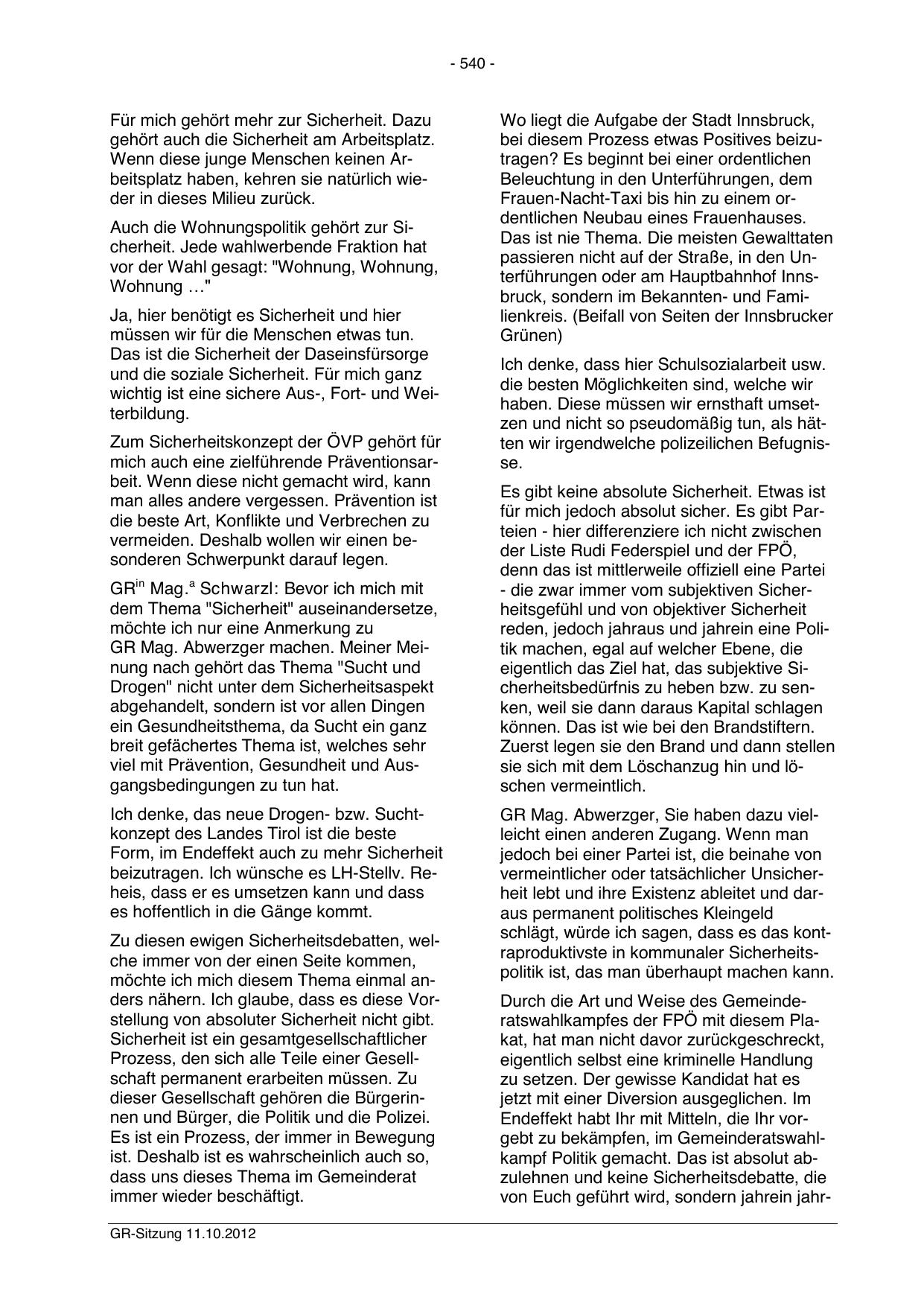 passieren nicht auf der Straße, in den Unterführungen oder am Hauptbahnhof Innsbruck, sondern im Bekannten- und Familienkreis. (Beifall von Seiten der Innsbrucker