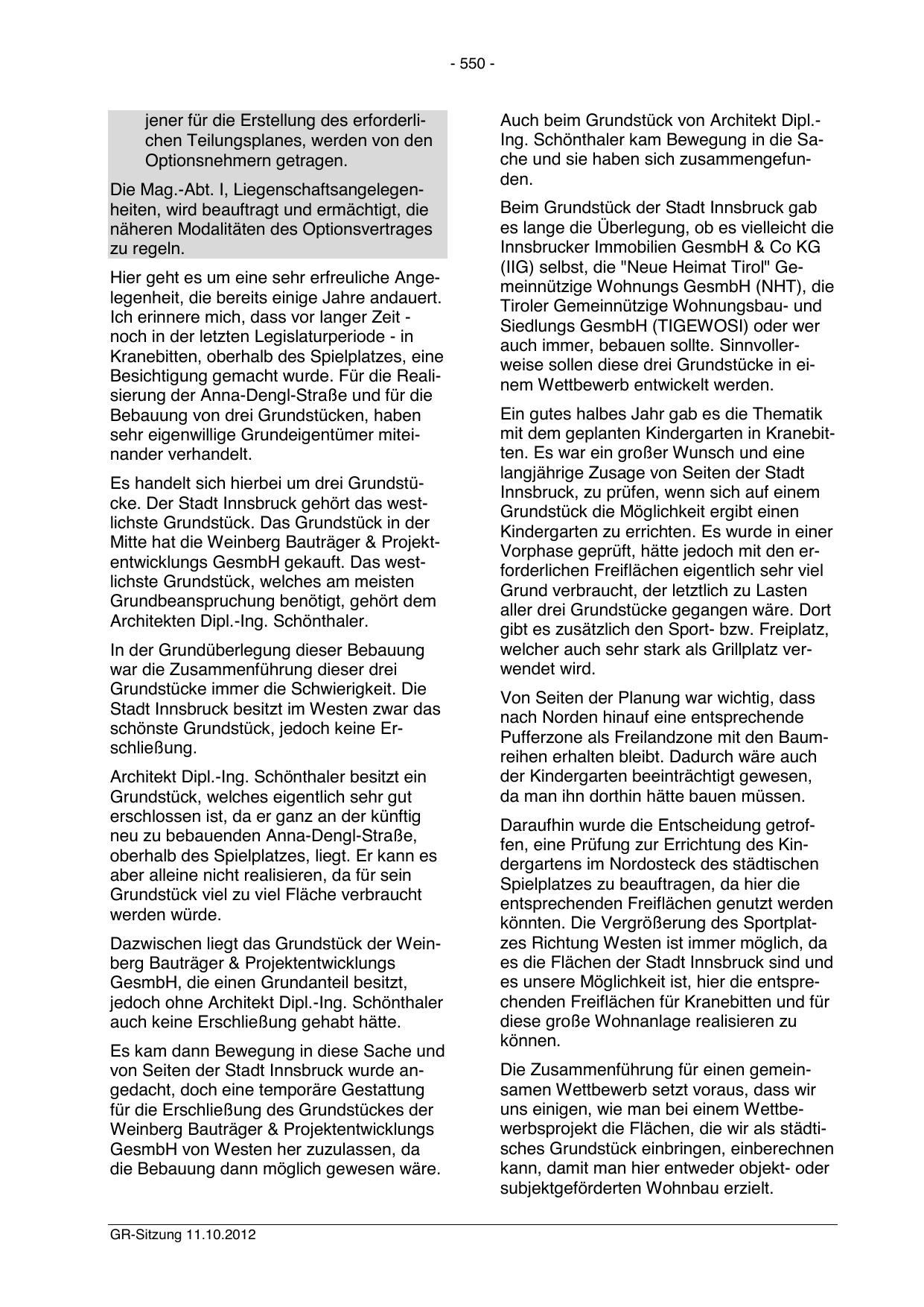 es unsere Möglichkeit ist, hier die entsprechenden Freiflächen für Kranebitten und für
