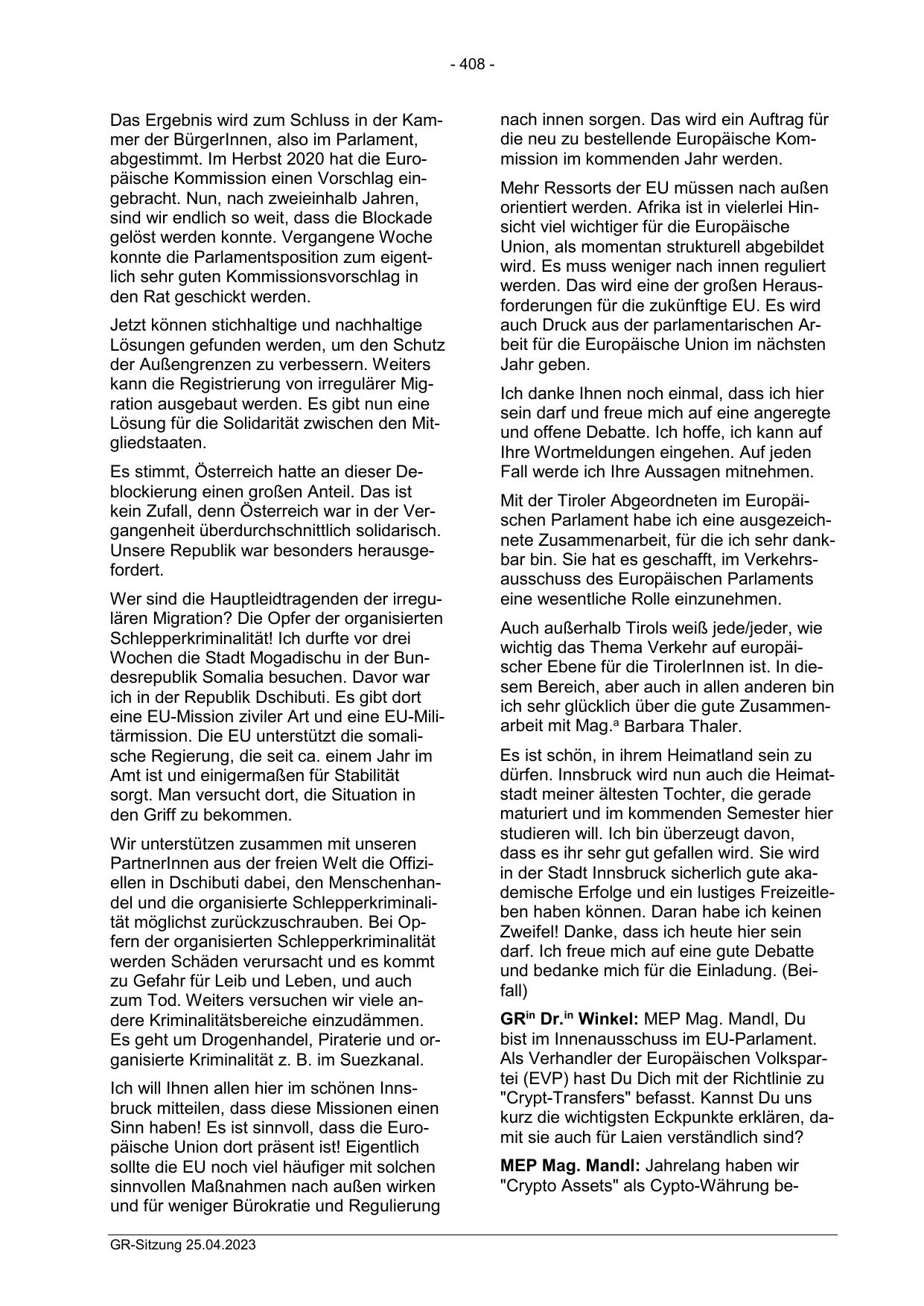 GRin Dr.in Winkel: MEP Mag. Mandl, Du