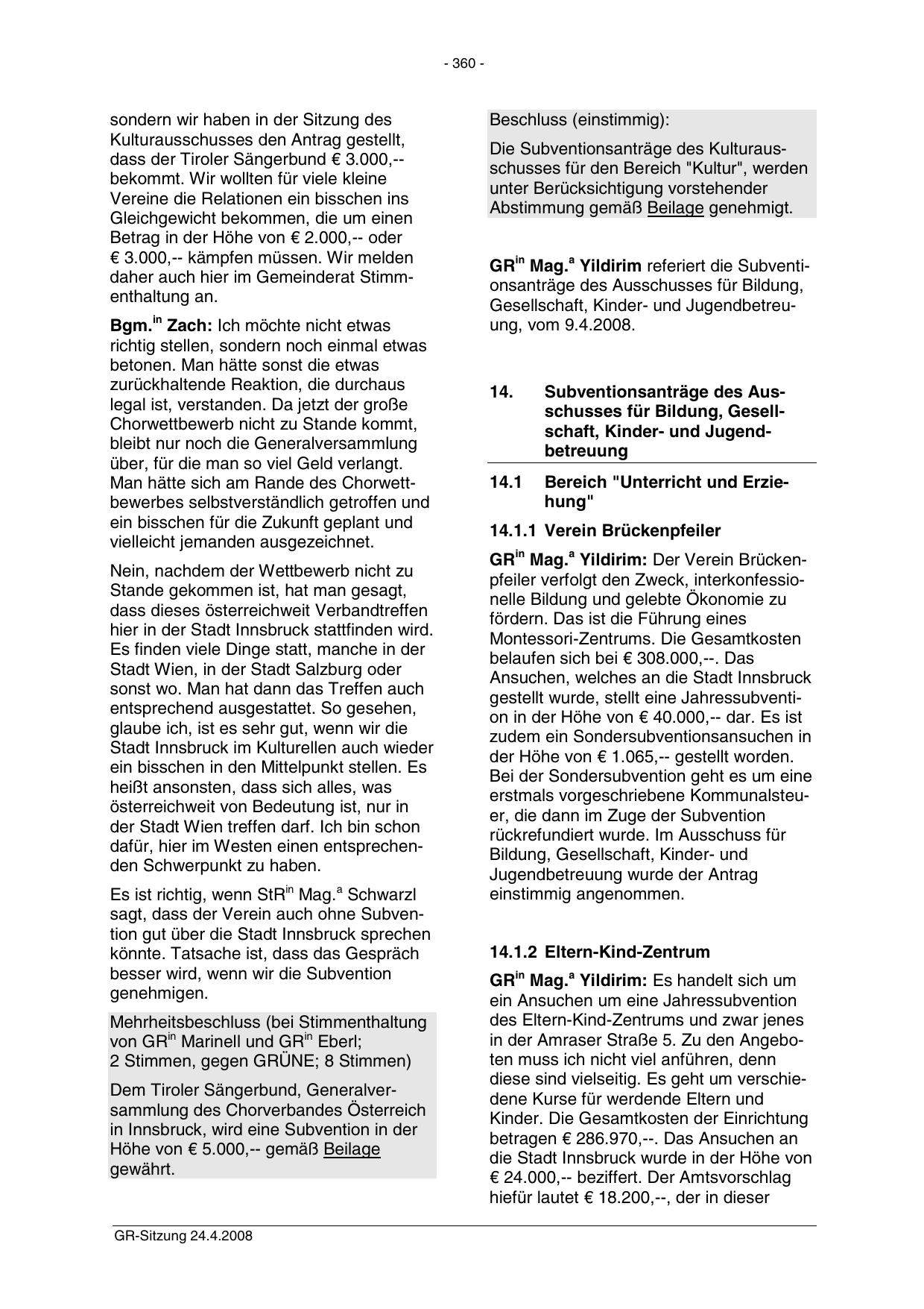 2 Stimmen, gegen GRÜNE; 8 Stimmen)