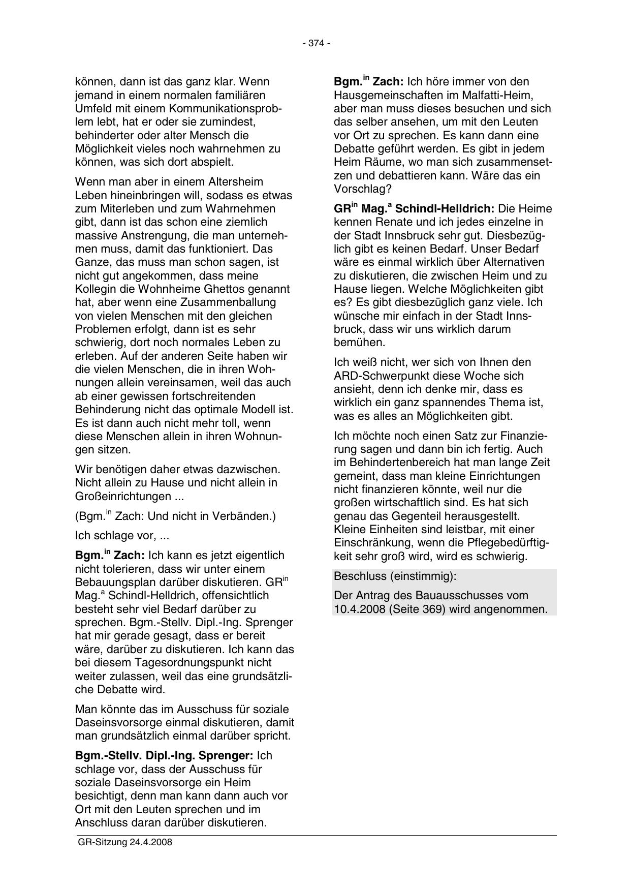 der Stadt Innsbruck sehr gut. Diesbezüglich gibt es keinen Bedarf. Unser Bedarf