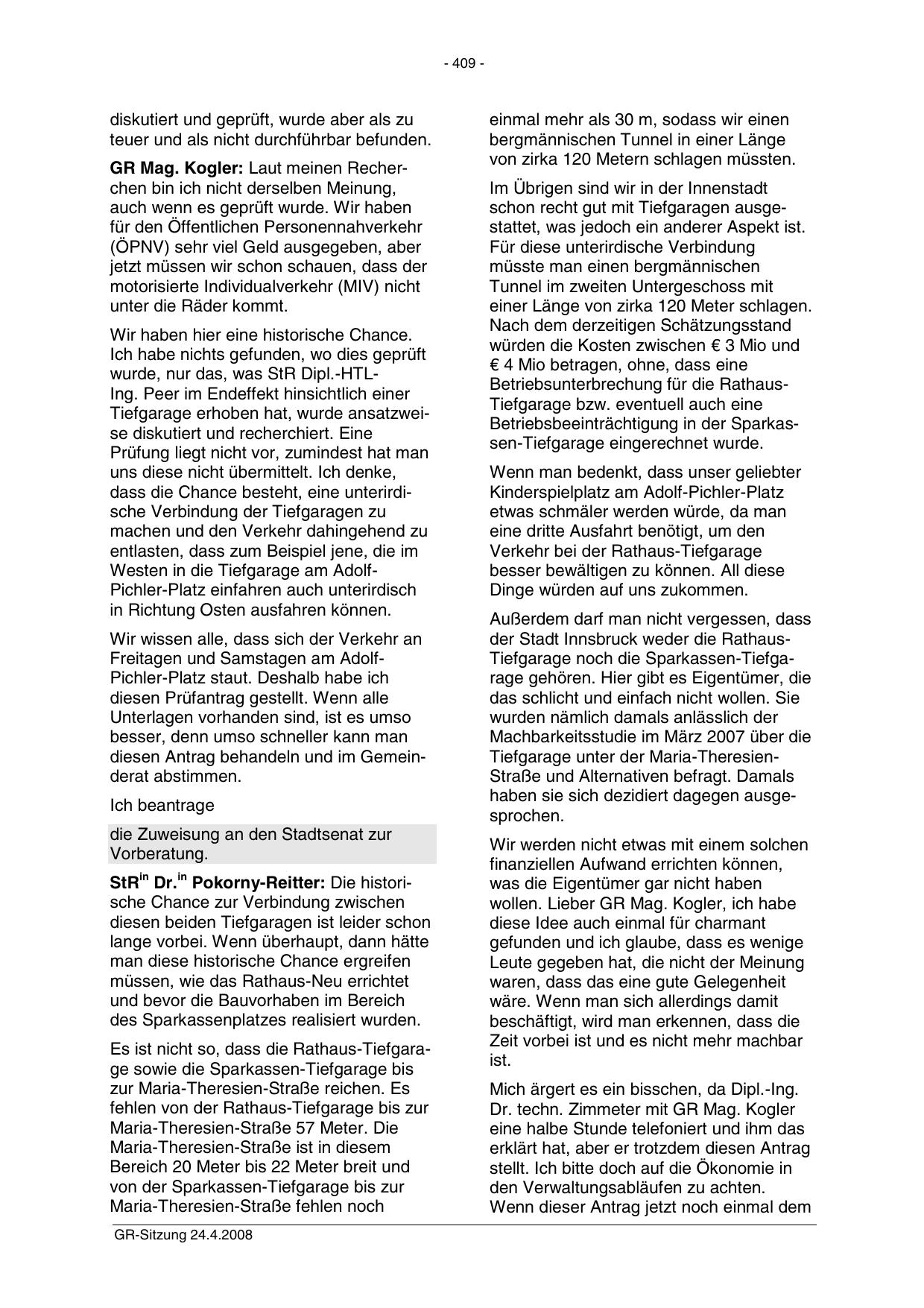 der Stadt Innsbruck weder die RathausTiefgarage noch die Sparkassen-Tiefgarage gehören. Hier gibt es Eigentümer, die