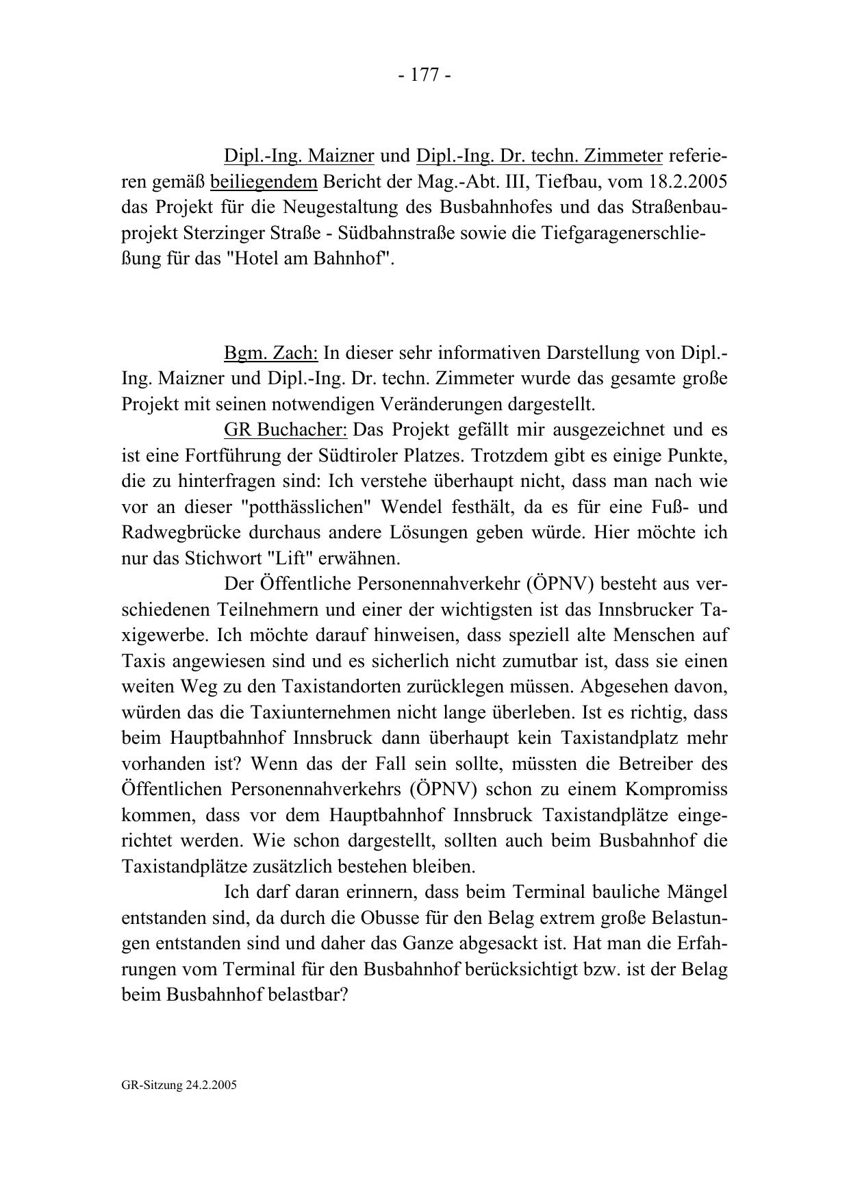 Dipl.-Ing. Maizner und Dipl.-Ing. Dr. techn. Zimmeter referieren gemäß beiliegendem Bericht der Mag.-Abt. III, Tiefbau, vom 18.2.2005