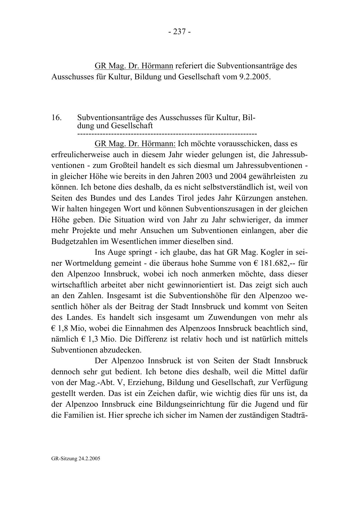 ---------------------------------------------------------------GR Mag. Dr. Hörmann: Ich möchte vorausschicken, dass es