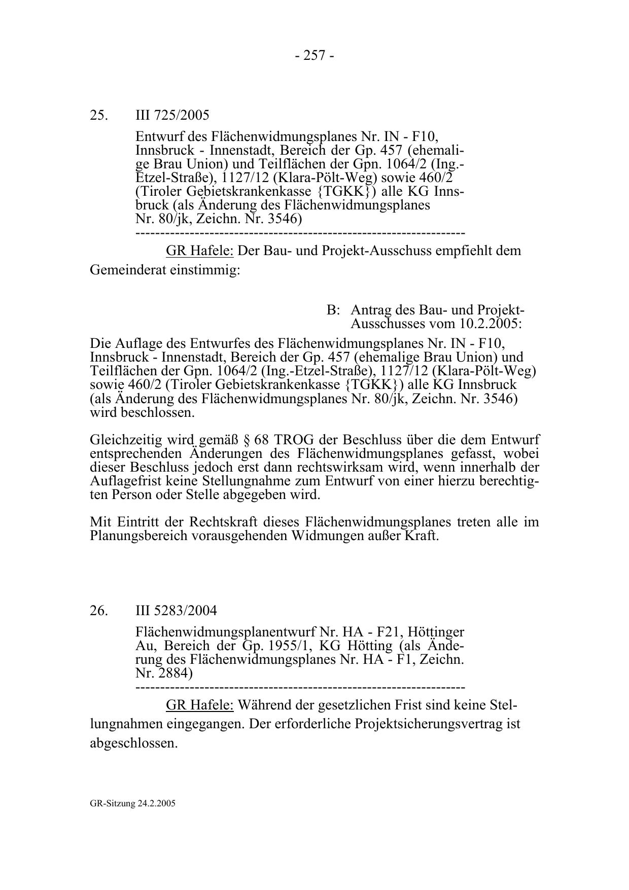 Die Auflage des Entwurfes des Flächenwidmungsplanes Nr. IN - F10,