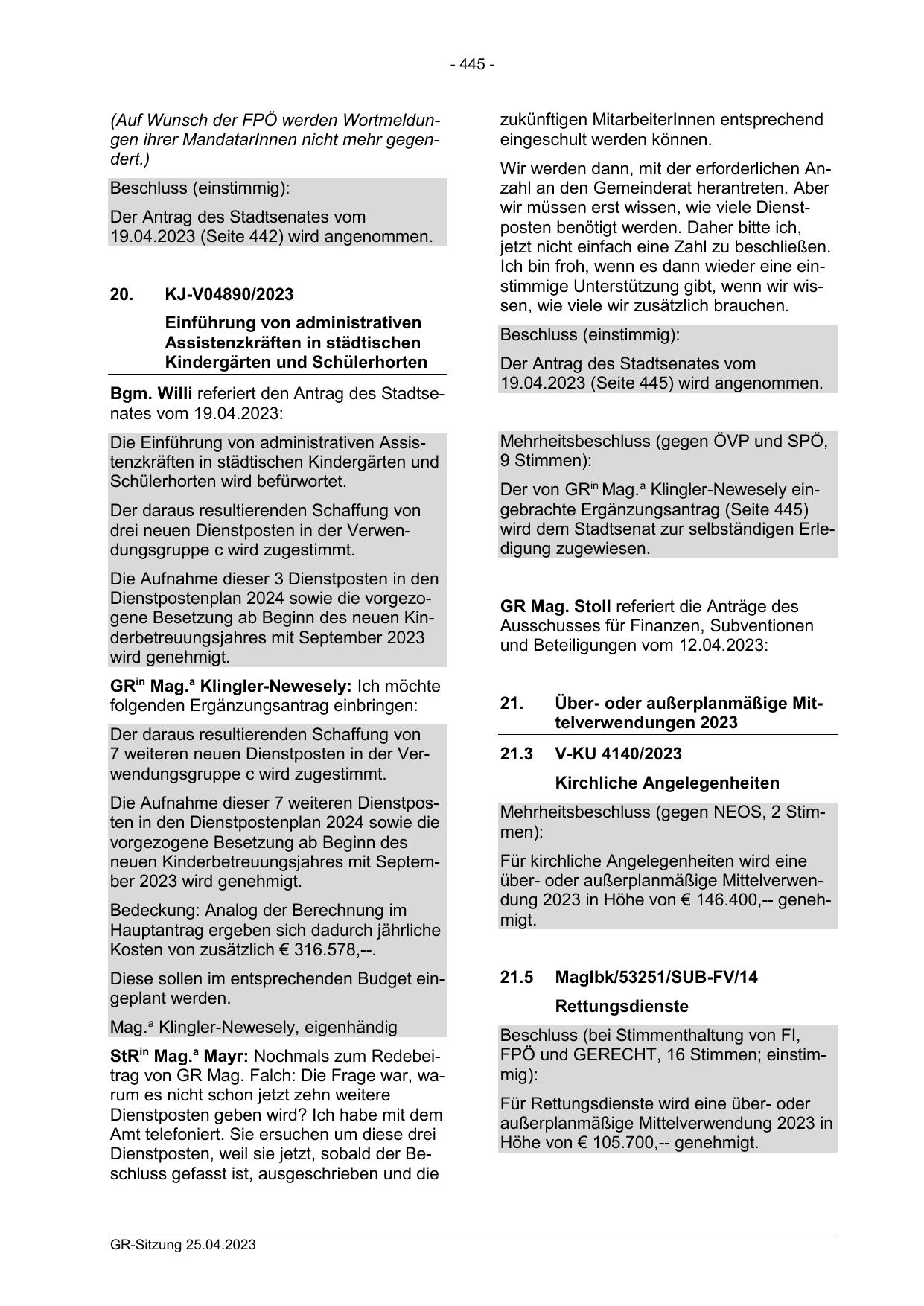 19.04.2023 (Seite 445) wird angenommen.