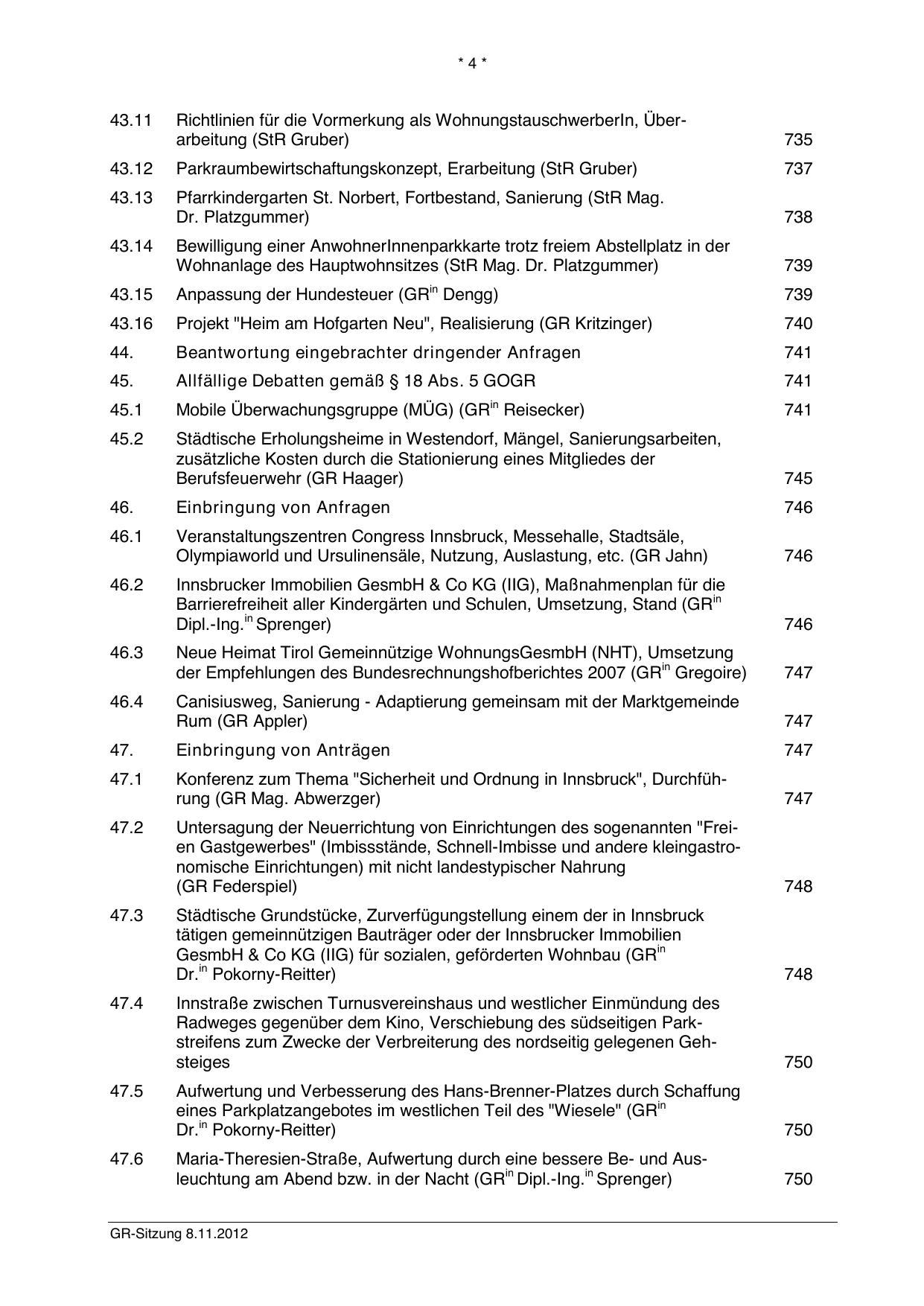 Städtische Grundstücke, Zurverfügungstellung einem der in Innsbruck