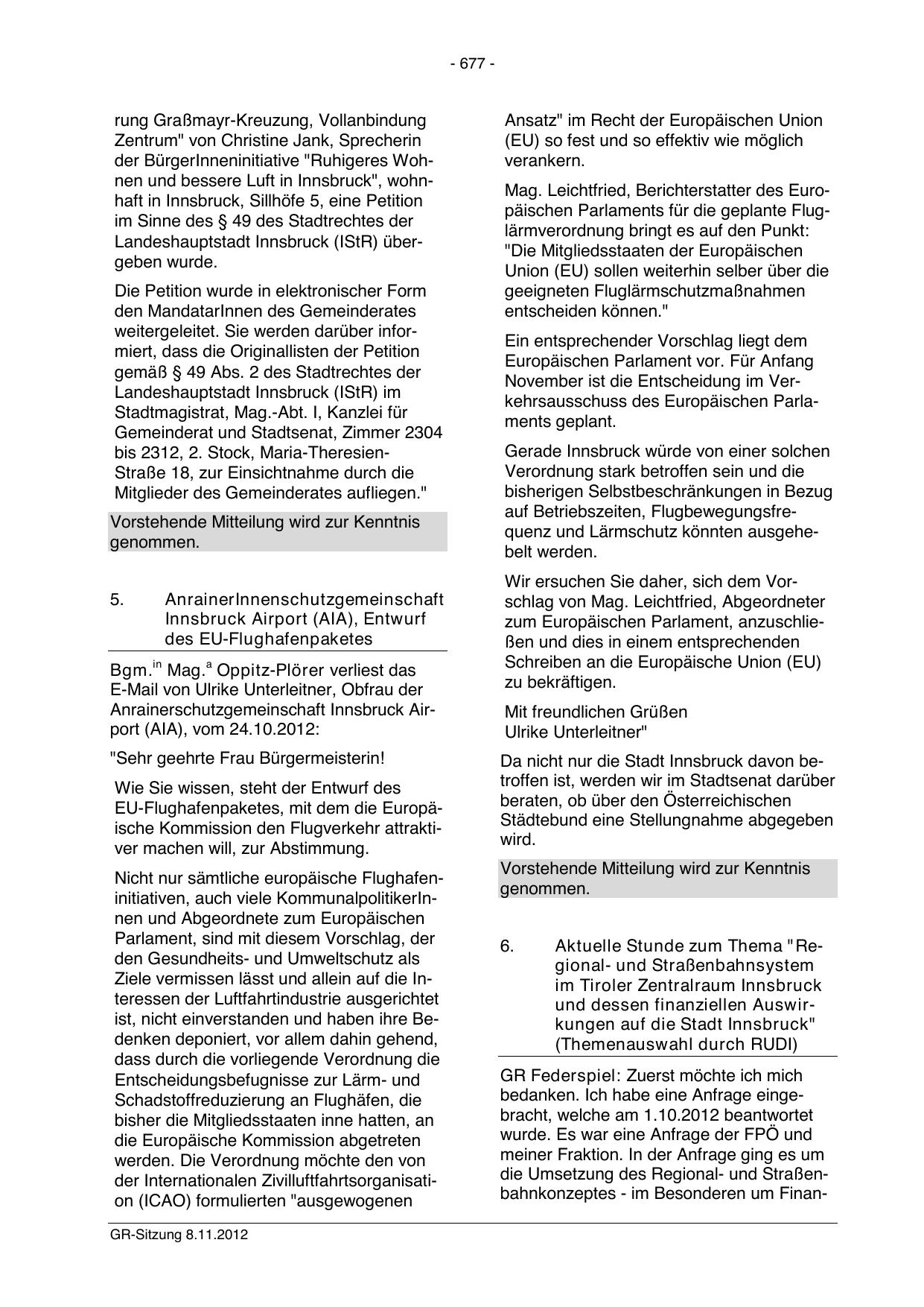 Anrainerschutzgemeinschaft Innsbruck Airport (AIA), vom 24.10.2012: