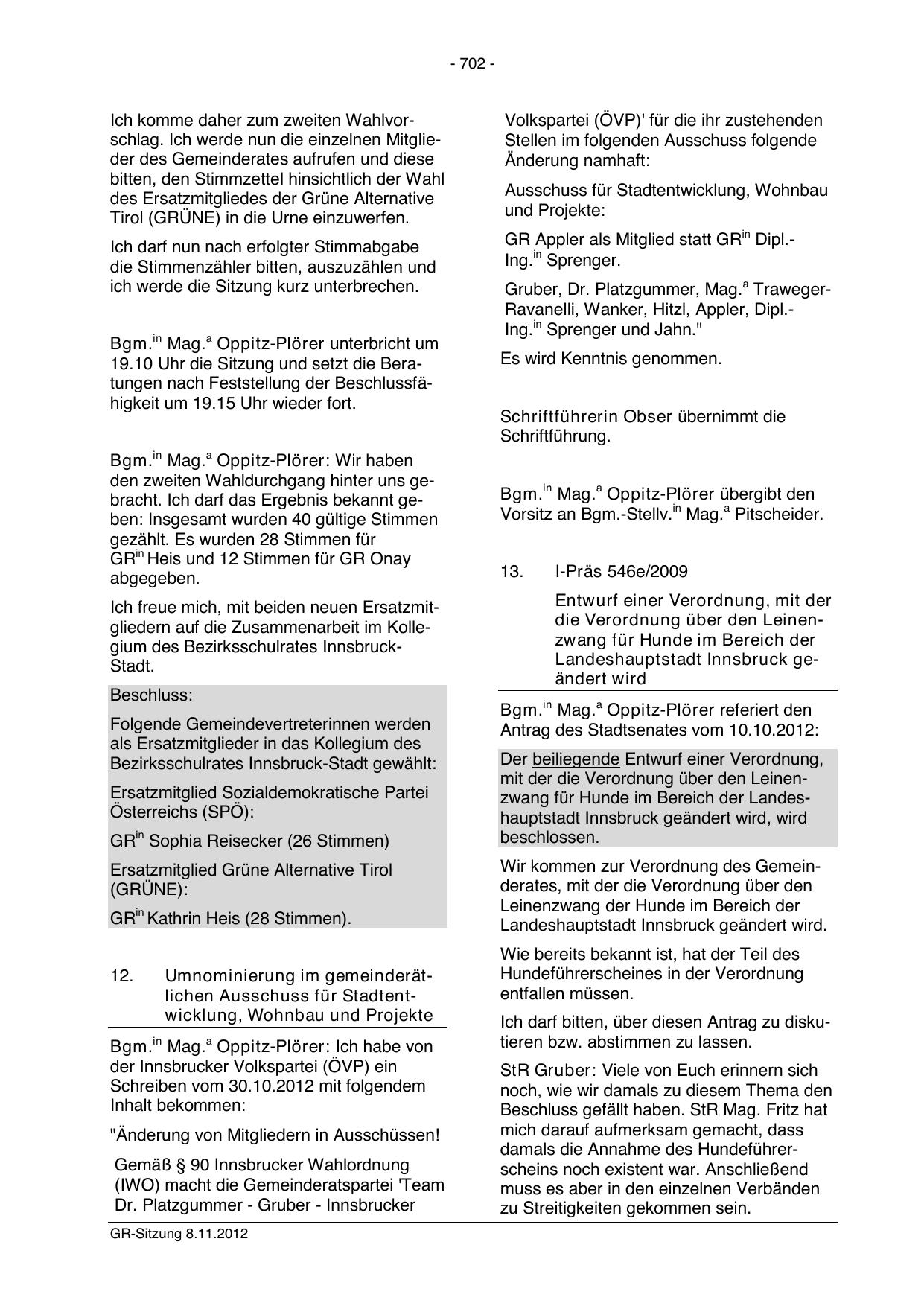 Beschluss gefällt haben. StR Mag. Fritz hat