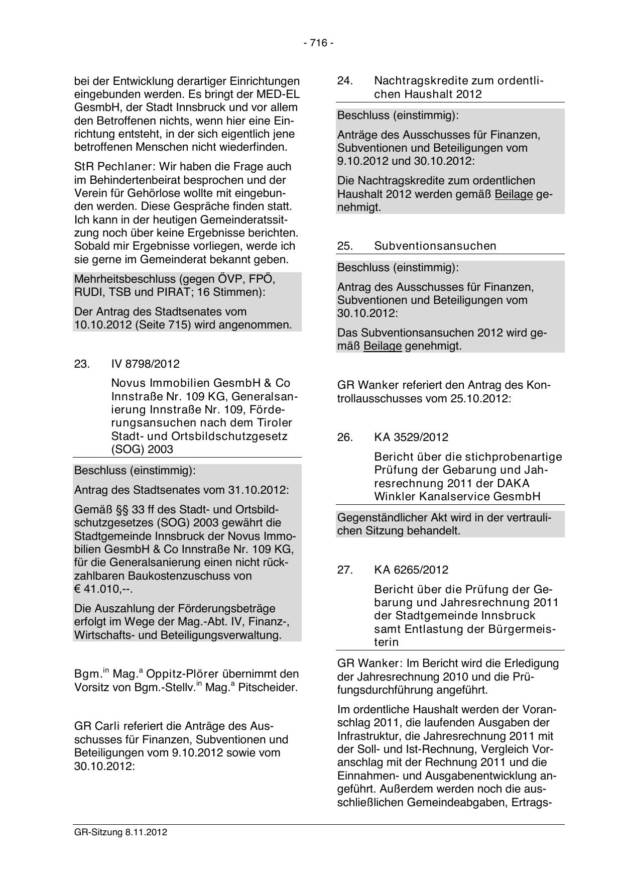 GR Wanker referiert den Antrag des Kontrollausschusses vom 25.10.2012: