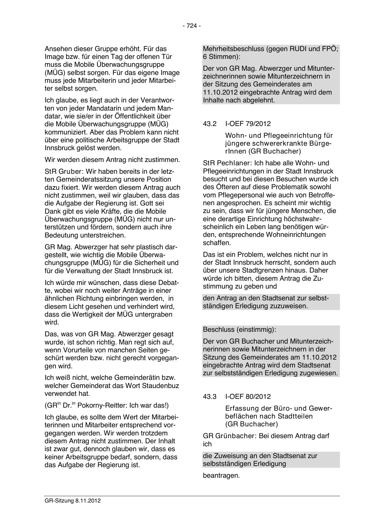 Mehrheitsbeschluss (gegen RUDI und FPÖ;