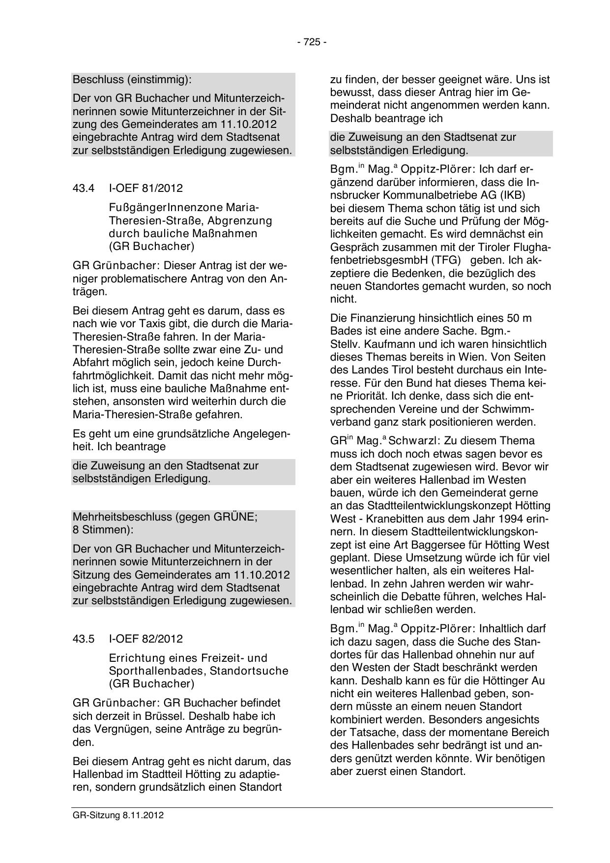 Bgm.in Mag.a Oppitz-Plörer: Ich darf ergänzend darüber informieren, dass die Innsbrucker Kommunalbetriebe AG (IKB)