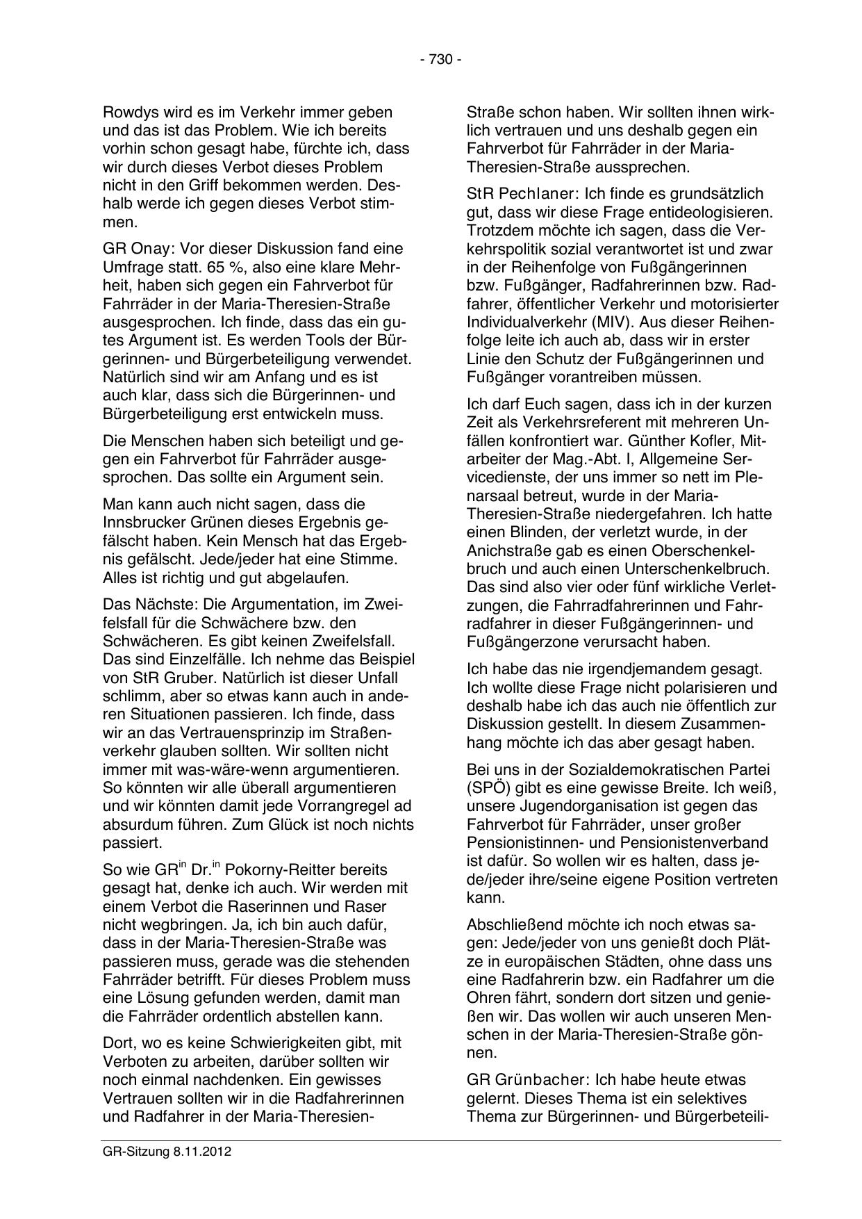 und Radfahrer in der Maria-TheresienGR-Sitzung 8.11.2012
