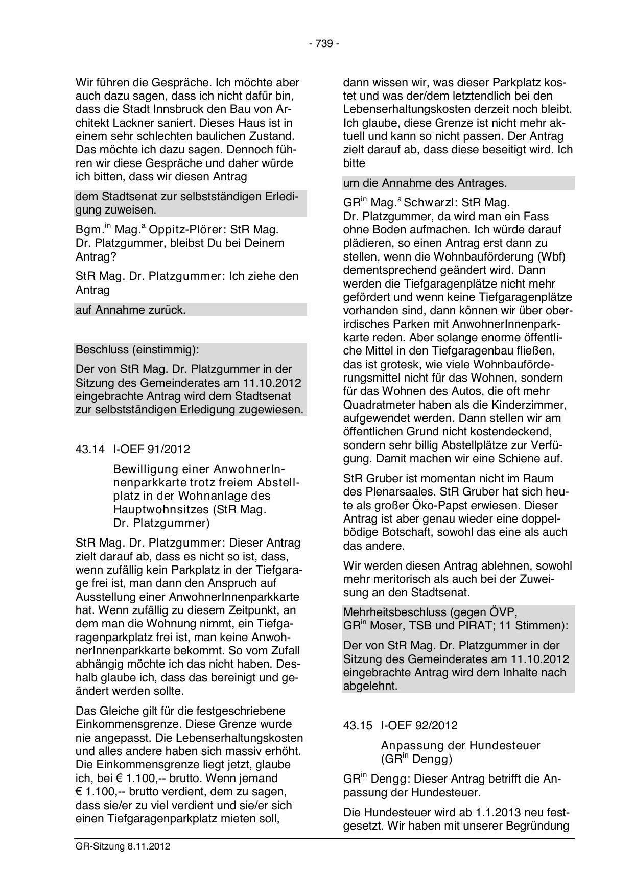 GRin Moser, TSB und PIRAT; 11 Stimmen):