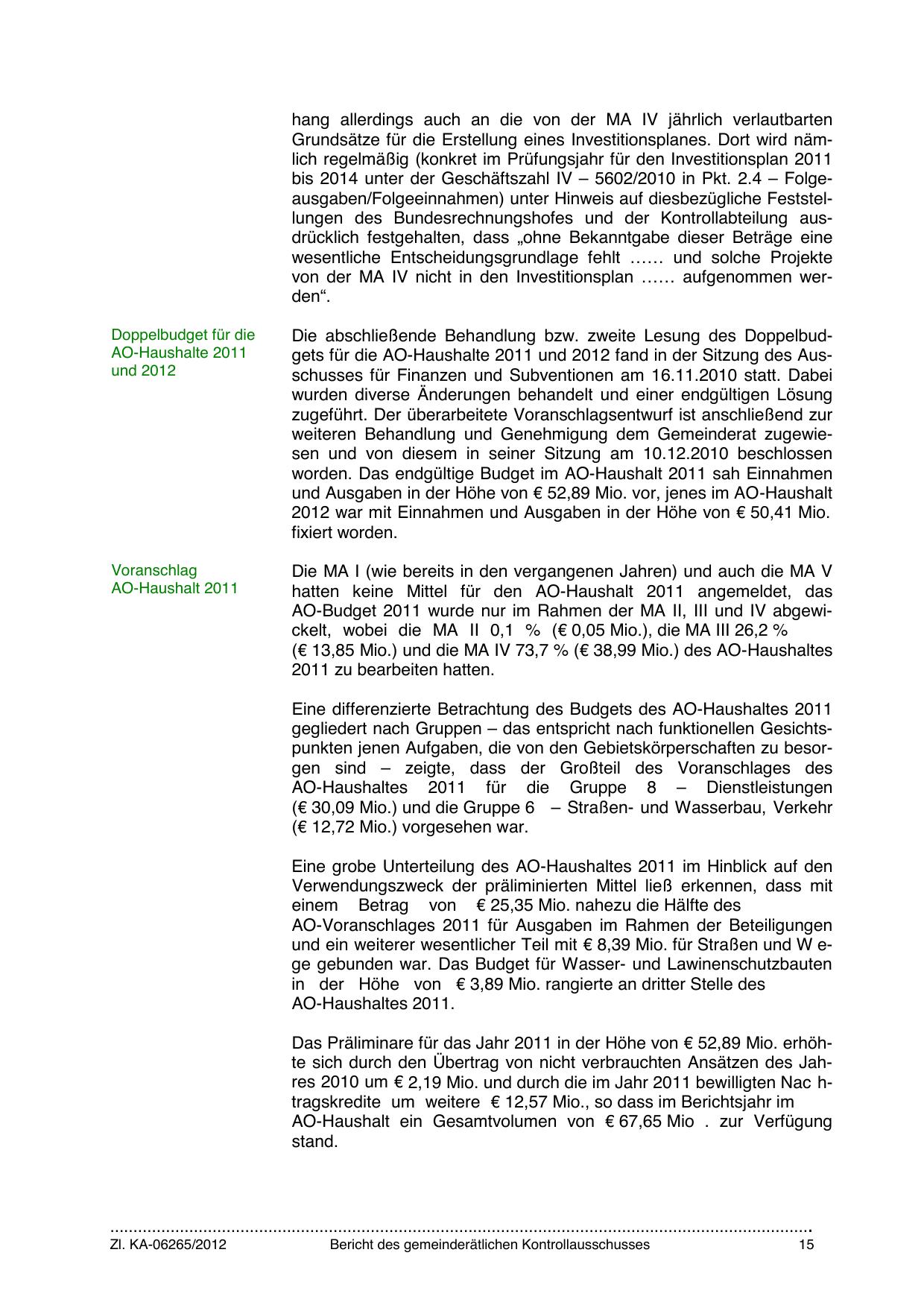 (€ 13,85 Mio.) und die MA IV 73,7 % (€ 38,99 Mio.) des AO-Haushaltes