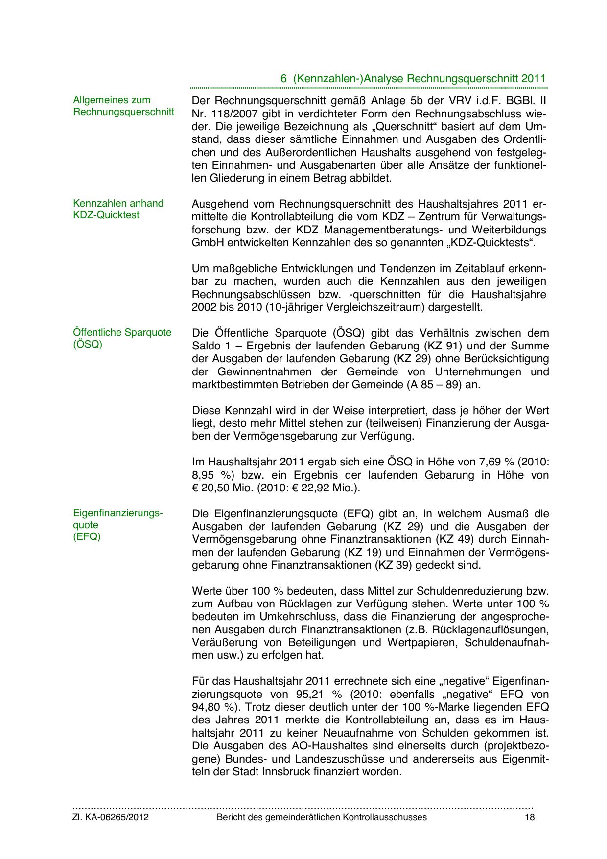 6 (Kennzahlen-)Analyse Rechnungsquerschnitt 2011