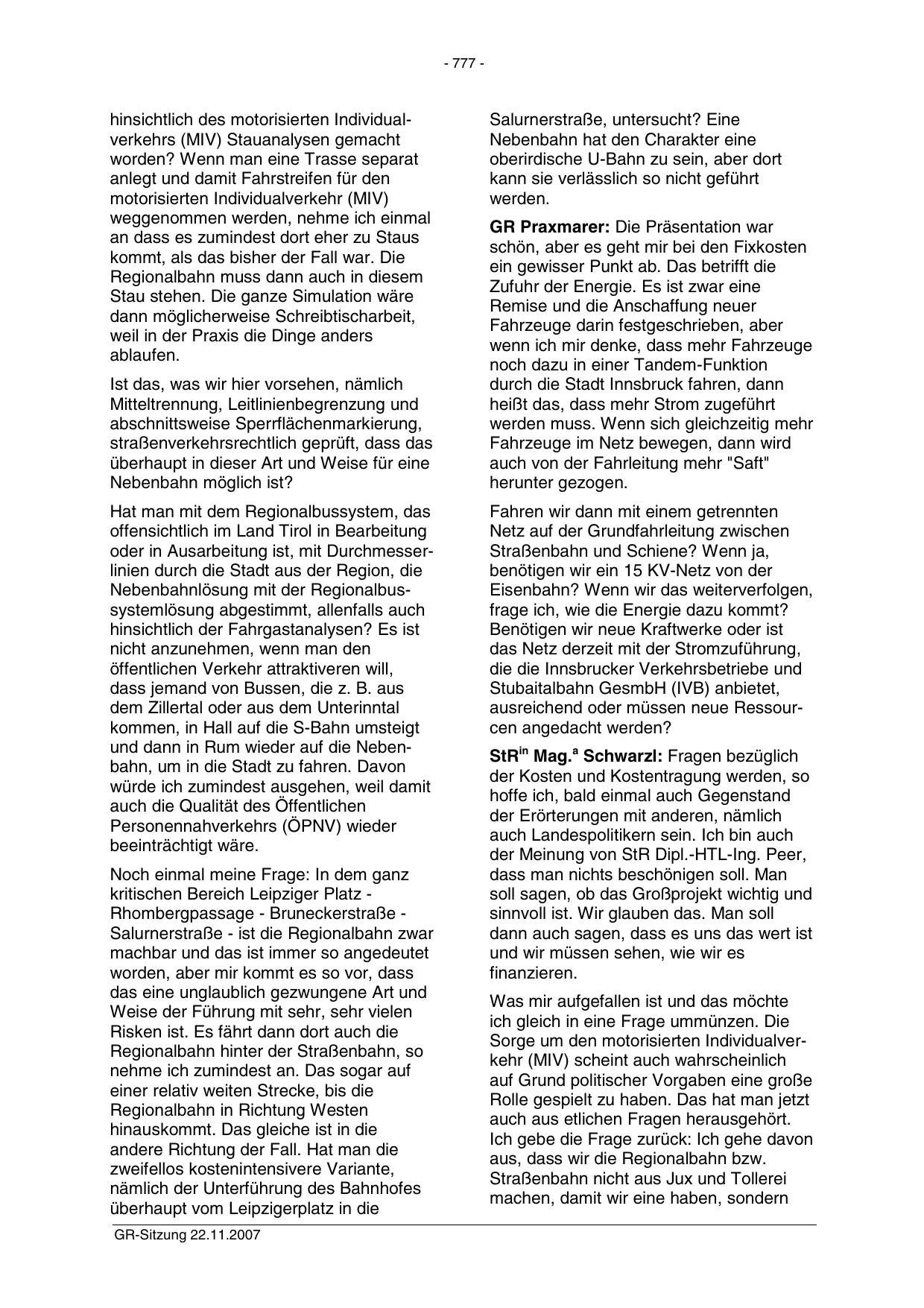 der Meinung von StR Dipl.-HTL-Ing. Peer,