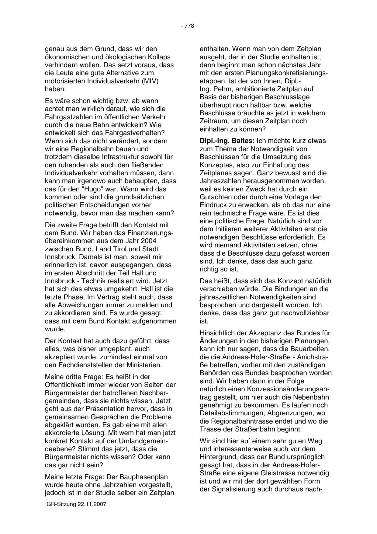 mit den ersten Planungskonkretisierungsetappen. Ist der von Ihnen, Dipl.Ing. Pehm, ambitionierte Zeitplan auf
