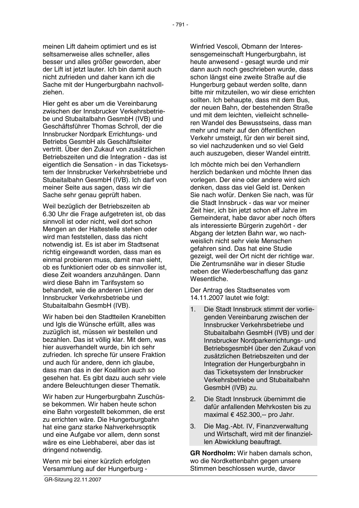 Versammlung auf der Hungerburg GR-Sitzung 22.11.2007