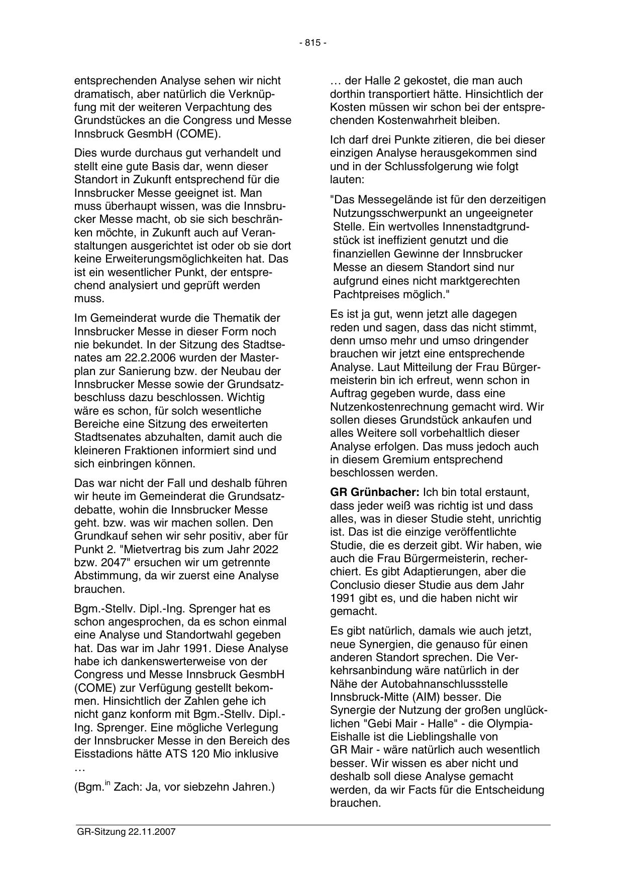 wir heute im Gemeinderat die Grundsatzdebatte, wohin die Innsbrucker Messe