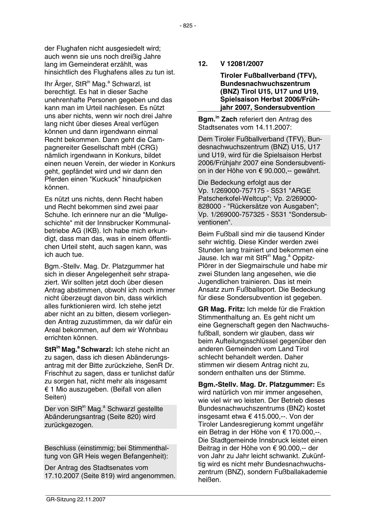Bgm.-Stellv. Mag. Dr. Platzgummer: Es