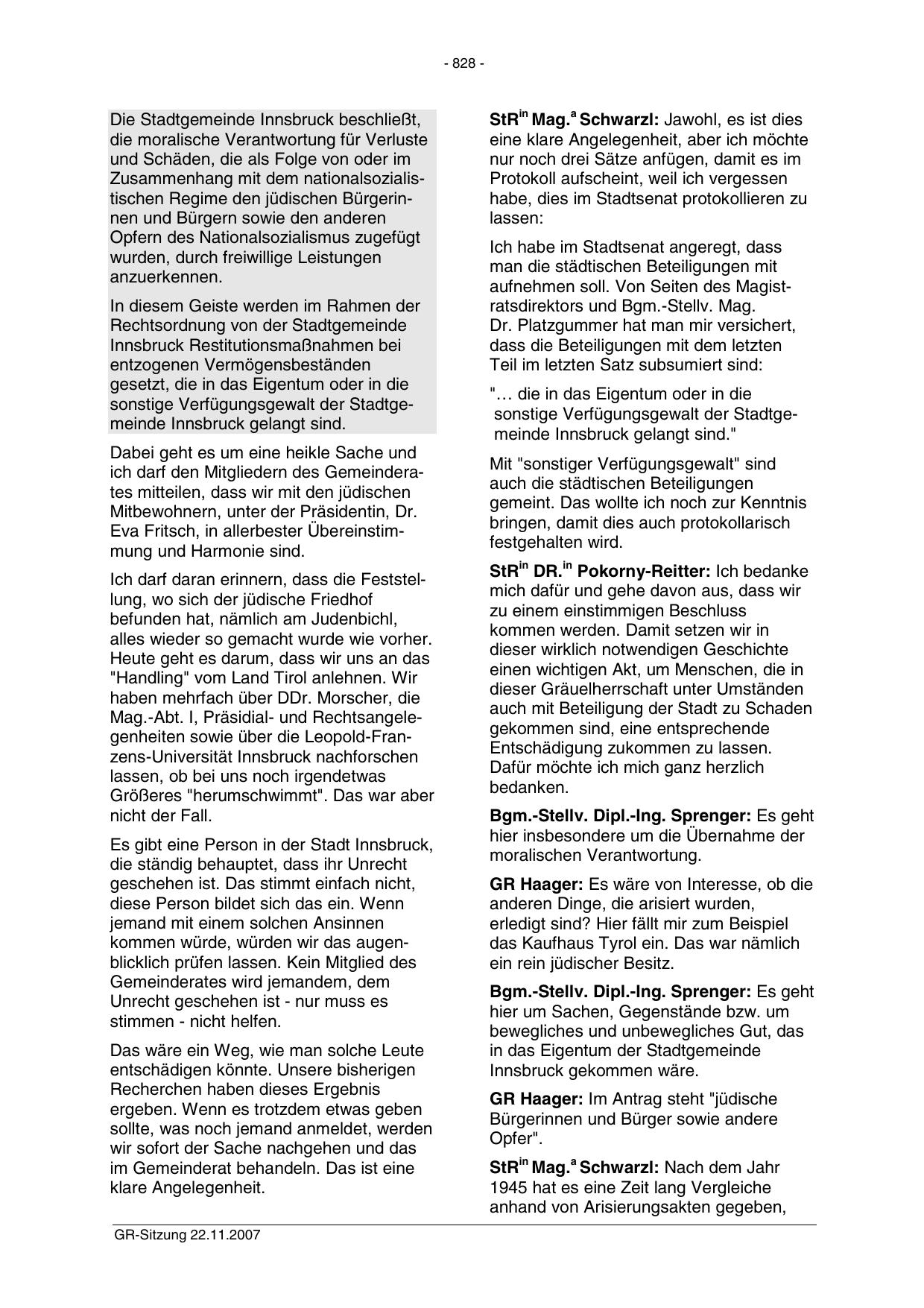 ich darf den Mitgliedern des Gemeinderates mitteilen, dass wir mit den jüdischen