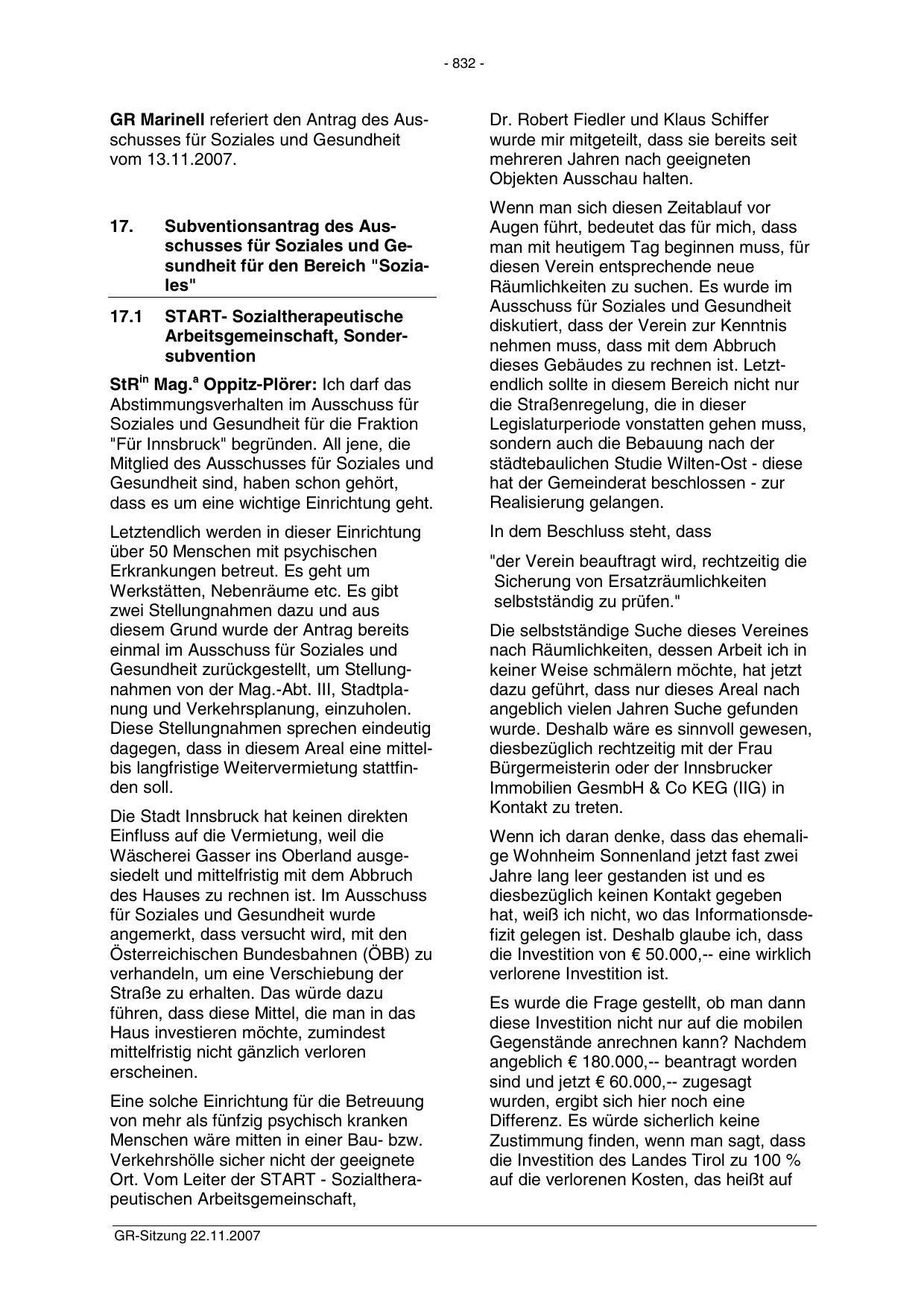 GR Marinell referiert den Antrag des Ausschusses für Soziales und Gesundheit
