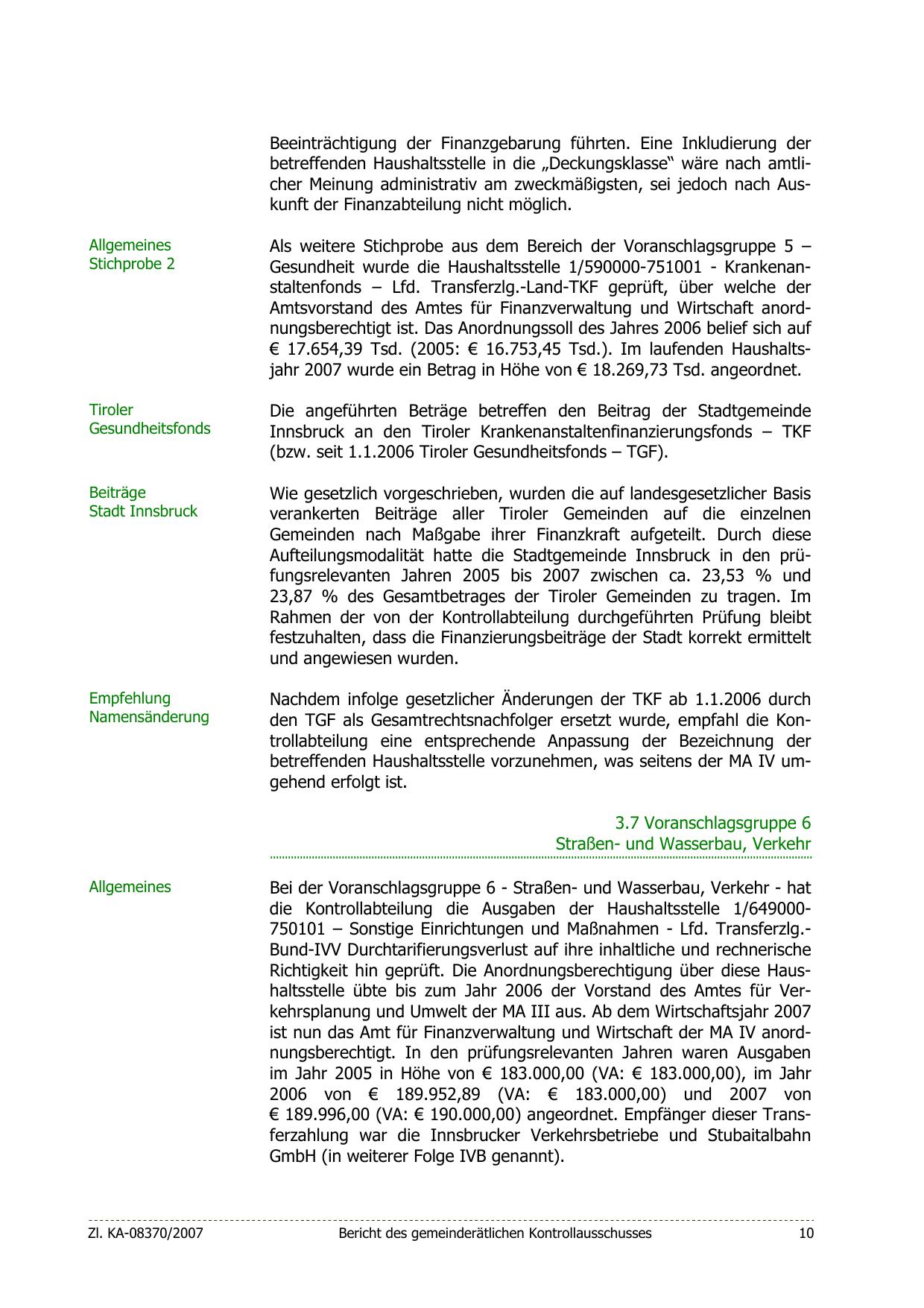 € 189.996,00 (VA: € 190.000,00) angeordnet. Empfänger dieser Transferzahlung war die Innsbrucker Verkehrsbetriebe und Stubaitalbahn