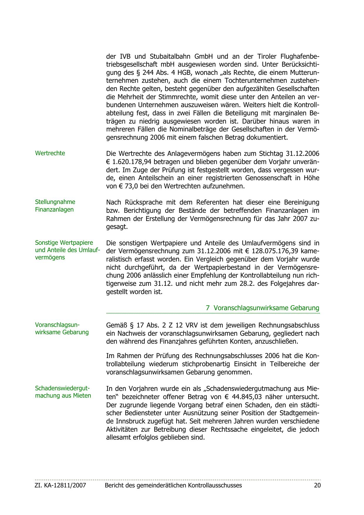 Rahmen der Erstellung der Vermögensrechnung für das Jahr 2007 zugesagt.
