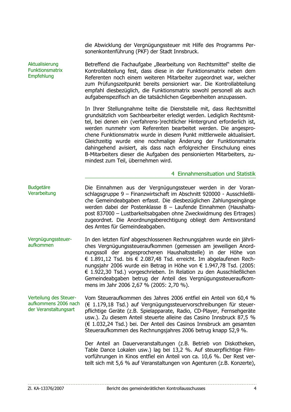 die Abwicklung der Vergnügungssteuer mit Hilfe des Programms Personenkontenführung (PKF) der Stadt Innsbruck.